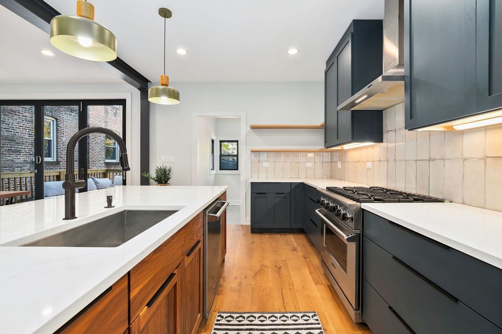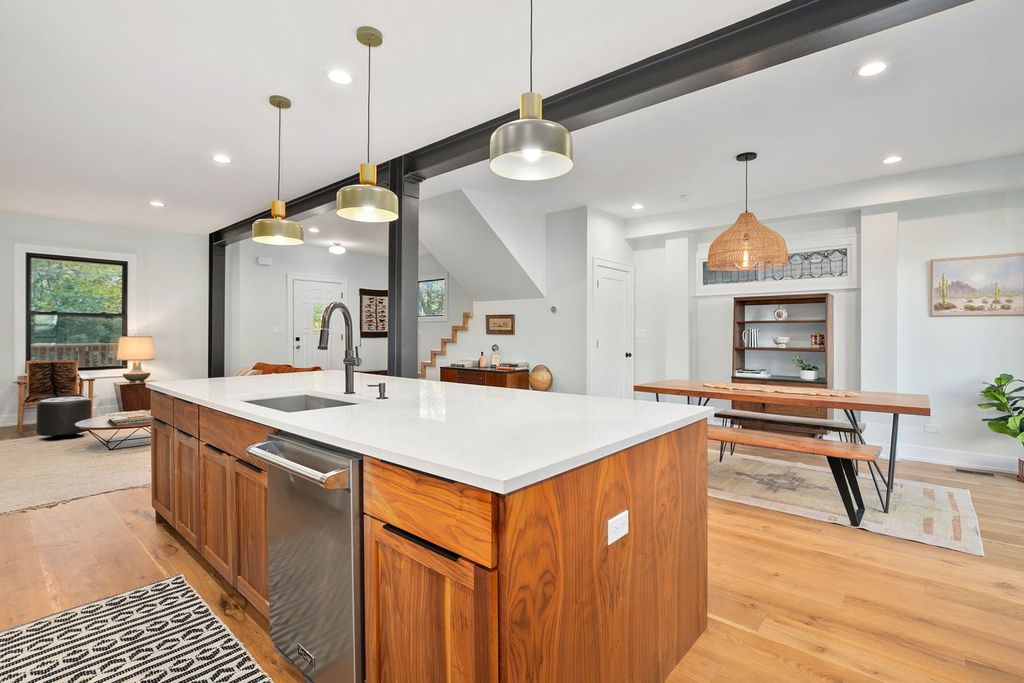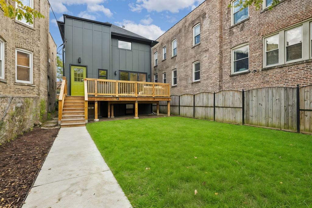 This four square style home has been thoughtfully updated to bring all the modern needs and wants to a classic style house. Every aspect of the interior was updated in 2021, from the guts to the aesthetics. The kitchen has loads of cabinet space for all your plates, mugs and kitchen gadgets. Custom floating shelves to make sure you can show off those special platters you only use a few times a year or your prized cocktail glassware collection. The island is enormous and can seat 5 bar seats comfortably. And guess what?! There is even storage on that side of the island as well. Forgot to mention the 36 inch Viking range, Viking dishwasher and Maytag refrigerator. Step into the dining room that leads outside by way of accordion style sliding doors to the deck. This creates excellent flow for entertaining on those beautiful Chicago summer nights. The living room looks out at the brand new (actually brand new, 2025) front porch with beautiful morning light. Have your coffee here or greet the little trick or treaters of the neighborhood, either way a front porch is life goals for so many. Upstairs you have all 3 bedrooms and 2 bathrooms Recessed lighting and secondary lights or fans in all rooms. Primary and secondary rooms have cute sconces for added bedroom vibes. The primary has a 7x8 walk in closet already decked out with custom shelving. But wait there is more, all 3 bedrooms have custom shelving already installed too. Back to the primary - the bathroom has heated floors, a soaker tub, side by side sinks sitting atop a vintage dresser style vanity and a soaker tub. Now let's head to the basement. The seller dug the basement out about 15 inches to create tall ceilings, so if you are over 6ft tall, you can hang out down here. The footings of the house are also brand new. This basement is currently set up as a big open space, but could easily accommodate a bedroom being built if you needed the extra space. There is also a full bathroom down here too which is a must for any basement hang. This house has a sump pump and drain tile - all the fixings to hopefully never have any water issues. The icing on the cute foursquare cake is, the roof is brand new (again, actually brand new, 2025). Let's talk about the neighborhood - Lawndale is a dead end street. At the end of the street is the river and Eugene Field Park with baseball fields, tennis courts, basketball, a nature trail and a kids playground. The house is located about a 20 minute walk from the Kedzie Brown Line.