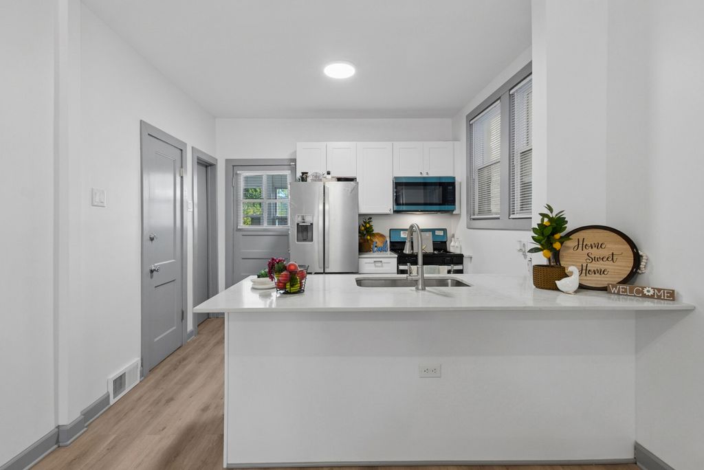 Beautifully completely rehabbed 3-bedroom bungalow where modern style and thoughtful updates create a truly turnkey home. Step inside to an open, sun-filled layout featuring brand-new luxury vinyl plank flooring and an open concept kitchen complete with white shaker cabinets, quartz countertops, a single basin stainless-steel sink, along with new stainless-steel appliances making it perfect for both cooking while entertaining. Primary updates include new electrical and plumbing throughout the home and new energy-efficient vinyl windows, just to name a few. The home has been completely painted including the freshly painted basement adding endless possibilities. The basement includes a laundry area with washer/dryer and is also ideal for a home gym, recreation room, office space, or even a primary/guest suite. An oversized new bathroom is featured in the basement as well with a large walk-in shower. Step outside to enjoy the manicured yard with a new privacy fence and patio area. The all brick 2 1/2 car garage compliments the home featuring an overhead powered garage door. Perfect for parking your vehicles, motorcycle, or even converting it into a she-shed/man-cave. Endless opportunities await. This home perfectly blends comfort, functionality, and modern living. Just off highway I90 and nearby parks & restaurants. Don't miss your chance to make this beautiful bungalow yours!
