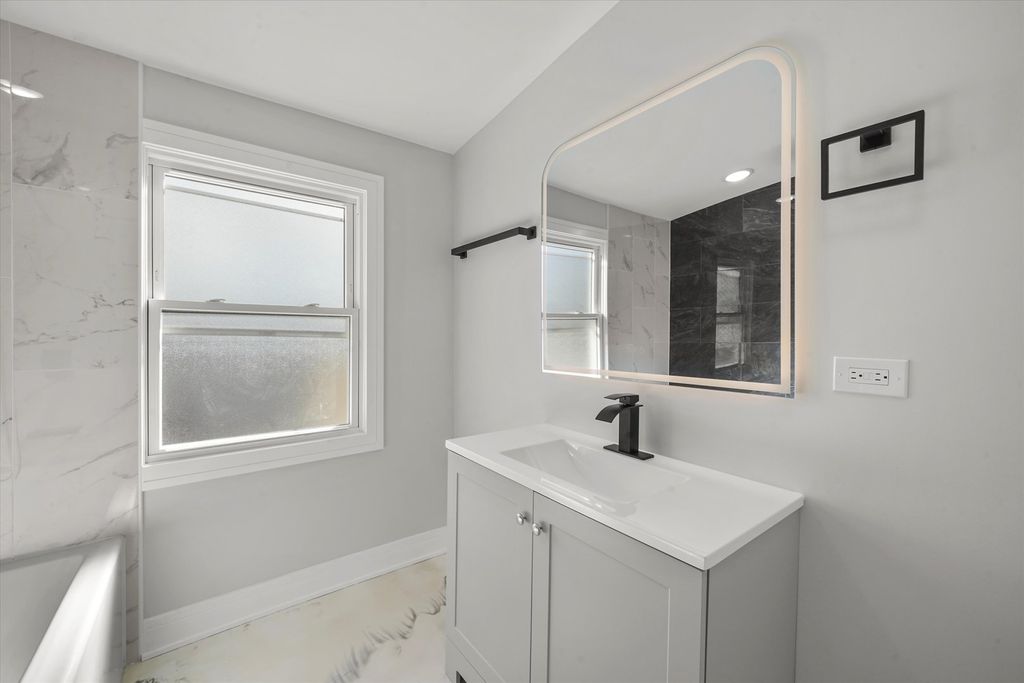 amazing rehabbed home with hardwood floors and epoxy finish larger backyard and new garage finished basement with full bathroom new electrical new plumbing new HVAC system new electrical chimney