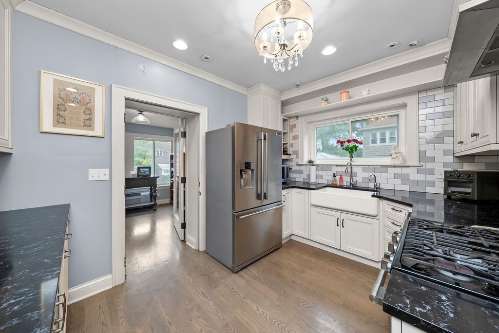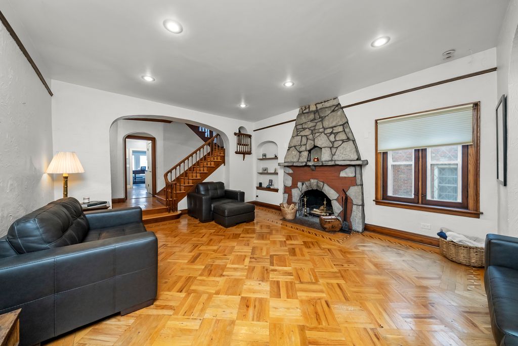 This expansive, brick Tudor that boasts classic Beverly charm is situated on an oversized corner lot. Built in 1931, this home features a main level with a large, inviting living area with wood-burning fireplace and parquet floors, powder room, formal dining room with original walnut wainscoting, and updated kitchen with a sunny bonus room overlooking the yard. The second level is comprised of three generous-size bedrooms with ample closets and one full bathroom. Additionally, there is a massive basement with an additional family room and two other rooms that can function as bedrooms or offices. The home boasts radiant heat and Space Pak for central air. Last but not least, enjoy a landscaped private backyard that leads to an original brick two-car garage. Beautiful, friendly, quiet area close to restaurants, coffee shops, shopping centers and much more!