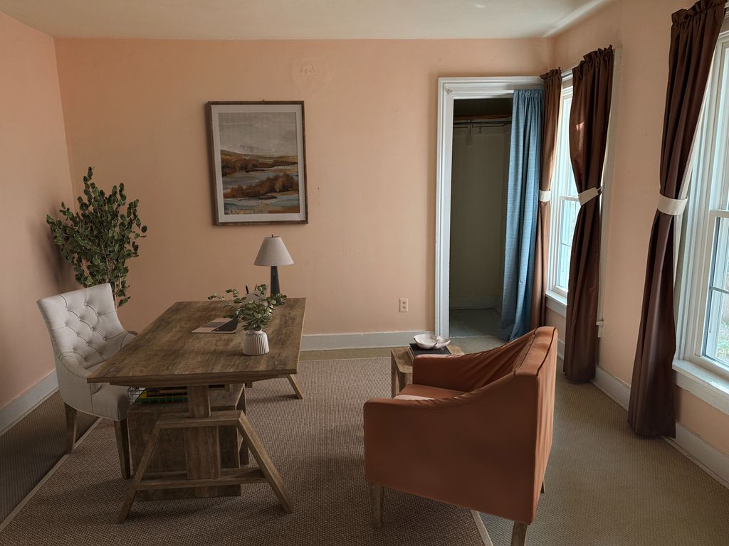 Welcome to a home brimming with original character and ample space for everyone! The main floor invites you in with a sitting room featuring a wall of bookcases perfect for a home library. The kitchen is complete with a breakfast bar, dining area and all appliances including an induction stove. Just off the kitchen, a versatile bonus room offers an ideal space for a children's play room, while the entry porch serves as a practical mud room. The main level also includes a cozy family room with a corner built-in, a full bath, and an additional room perfect for a home office. Step outside to a mostly fenced backyard with beautifully landscaped areas. Upstairs, you will find three generously sized bedrooms, each boasting a walk-in closet, along with a second full bath. The current owner has lovingly researched the home's rich history, preserving a picture of the property from its original days as a cherry farm, as well as photos of the original owners.