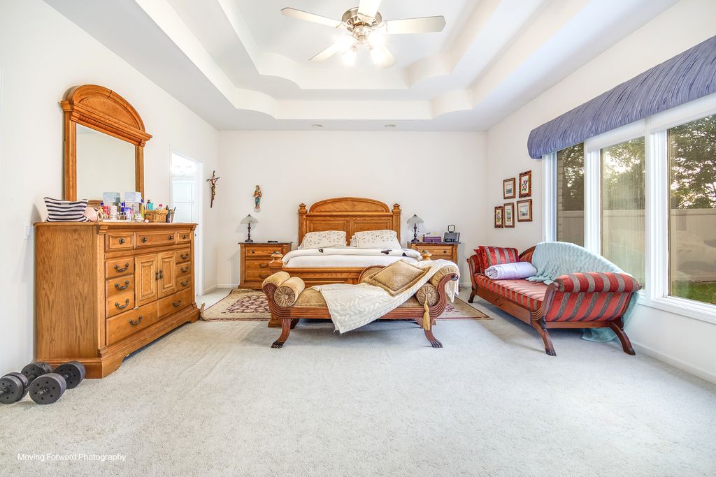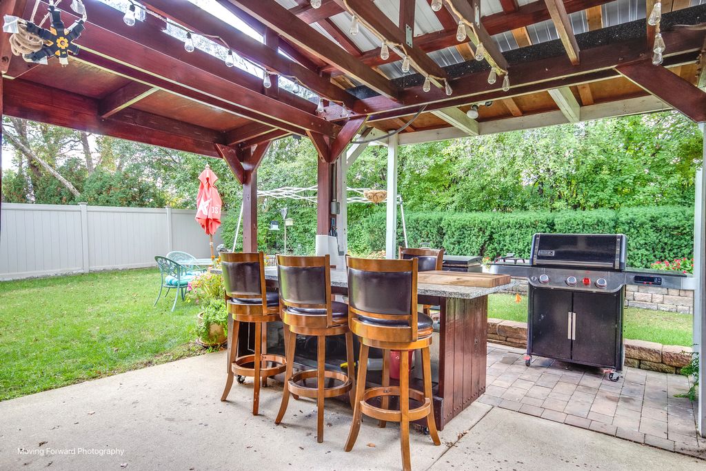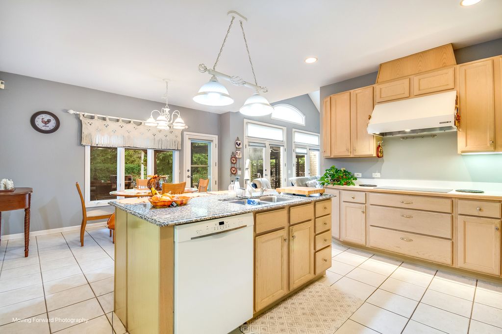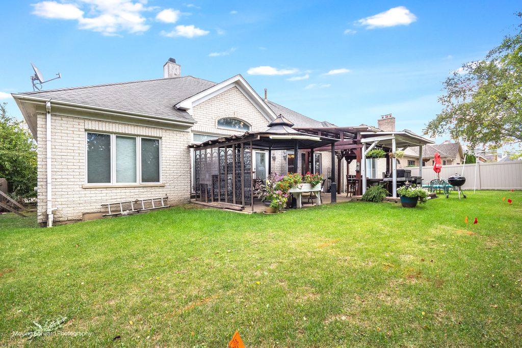 STUNNING ELEGANCE IN ESTEEMED STONEHEDGE COMMUNITY. Welcome to this beautifully crafted custom all-brick ranch in the desirable Stonehedge subdivision of Addison. This quality-built home offers 4 bedrooms and 3.5 bathrooms with exceptional space and design throughout. The main level features a spacious living room with vaulted ceilings that flows into the family room, separated by a see-through fireplace. The family room features cathedral ceilings and opens to the gourmet kitchen, creating a seamless space for entertaining and everyday living. A formal dining room provides a separate elegant space for special occasions. The gourmet kitchen includes a center island with sink, granite countertops, double ovens, cooktop with vented exhaust, and custom oak cabinetry. The primary suite features tray ceilings, a luxury bath with double vanities, and a walk-in closet. All additional bedrooms also have walk-in closets, with one main-level bedroom currently used as an office. Hardwood flooring enhances the living, dining, and family areas, while ceramic tile is in the kitchen and baths. The main-level laundry room includes a washer and dryer. The fully finished basement is large and spacious and includes a recreation room with a custom mahogany bar, a full bath, a fourth bedroom, an additional bonus room ideal for an office, hobby, or gym, and two separate storage rooms. There is also a dedicated exercise room, providing plenty of flexibility for all your needs. Step outside to a private, fenced backyard with a patio and pergola, perfect for outdoor gatherings. Additional features include gas forced air, central air conditioning, 200-amp electrical service, and circuit breakers. All appliances stay. A truly exceptional home offering comfort, quality, and versatility in a prime location! Property in great conidtion but is being sold as-is