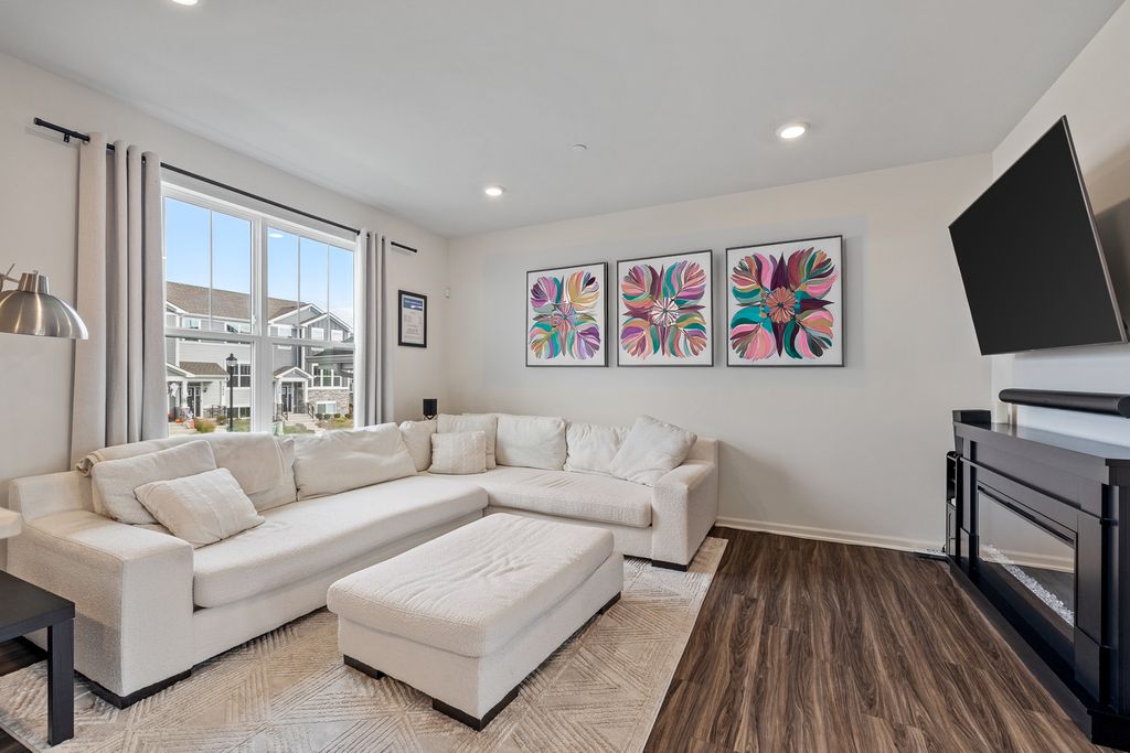 Welcome to the Crossings of Mundelein. Step inside to a bright foyer that opens up to a large inviting family room. This 3-bedroom 2 1/2 bath unit has an abundance of windows & natural light, with luxury vinyl flooring throughout. The kitchen features quartz counters with white cabinets & SS appliances. The upstairs features 3 bedrooms & 2 full baths. The Primary bedroom has an ensuite with a walk-in shower. Lower level is a lookout which is currently being used as an office, or could be perfect for a work-out area or children's playroom. This property has a Nest thermostat, security system, & additional storage has been added under the stairs. Motivated Seller! This is a must see!