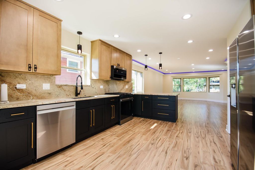 Welcome to this exquisite 4-bedroom, 2-bathroom home that has been completely remodeled down to the studs in 2025-no detail overlooked. Step inside and experience a flawless blend of contemporary luxury and high-end design throughout every inch of this stunning residence. The spacious open floor plan boasts sleek finishes, modern fixtures, and an abundance of natural light, creating an inviting and sophisticated living space perfect for both relaxing and entertaining. The kitchen is a chef's dream with top-of-the-line appliances, stylish cabinetry, and elegant countertops. Each of the four bedrooms offers comfort and style, while the two full bathrooms showcase spa-like features and premium materials. Car enthusiasts and hobbyists will love the heated garage with soaring ceilings and 220 power, providing room for two and a half cars plus additional storage or workspace. Enjoy serene views and endless outdoor fun as the property backs up to a village park-perfect for families and nature lovers alike. Plus, it's just one block from the grammar school, making this home ideal for growing families. Located in the desirable Homewood neighborhood, this home combines modern elegance with practical luxury. With this level of quality and craftsmanship, this opportunity won't last long-schedule your showing today and make this dream home yours!