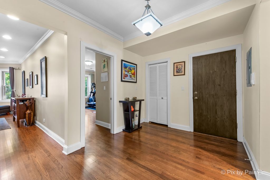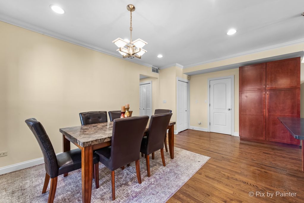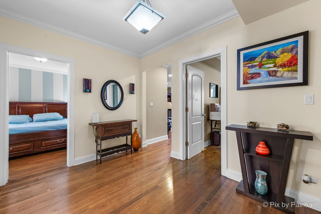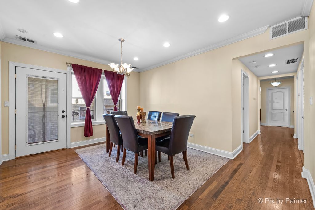 Welcome to West Ridge living at its finest! This spacious, updated 3 bedroom / 2 bath condo of comfortable living space with thoughtful updates and timeless finishes throughout. Entering the home through the extra wide foyer you'll find hardwood floors, 8 ft. ceilings with elegant crown molding, and a bright layout perfect for entertaining or relaxing at home. The kitchen is a dream-featuring cherry cabinets, granite countertops, stainless steel appliances - dishwasher (2023), fridge (2022), a large island, and a walk-in pantry with exceptional storage. The kitchen is open concept to the dining room. Enjoy your morning coffee or unwind in the evening on the oversized balcony just off the dining room. The primary suite offers a large bedroom with an en-suite. The bathroom features a jacuzzi tub, travertine tile, and a separate shower. The two other bedrooms are generously sized. The in-unit laundry closet is located in the hall separated from any of the bedrooms & was recently replaced in 2024. While the secondary bathroom is also updated with a brand new vanity (2024). Additional perks include central AC and heating, a tandem2-car parking space included in the price, and a storage locker in the basement. Conveniently located near parks, shopping, restaurants, and public transit, this condo perfectly blends comfort, style, and functionality in one of Chicago's most vibrant neighborhoods.