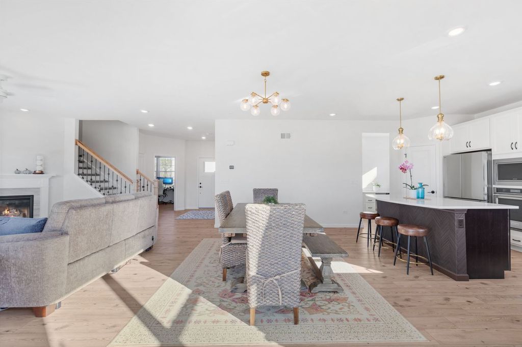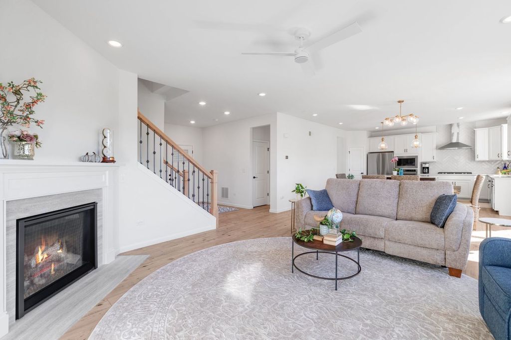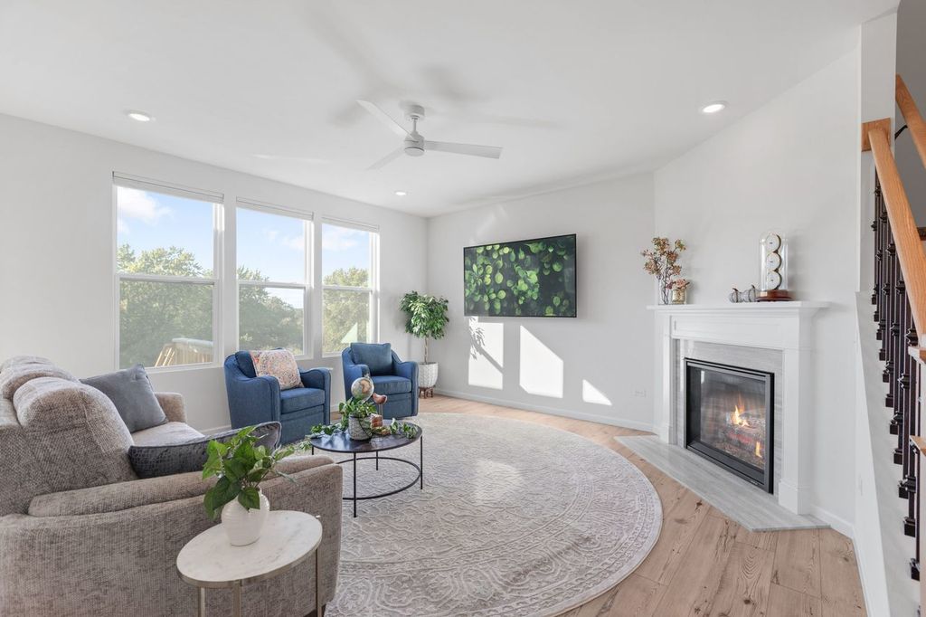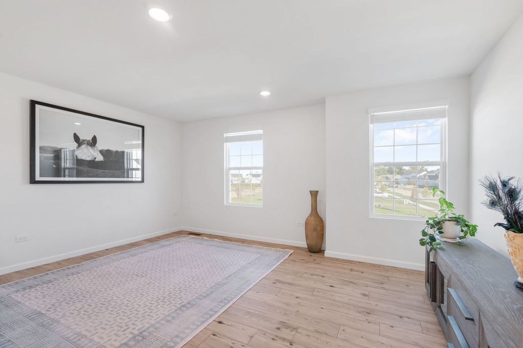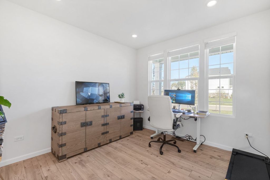 New Price! Amazing value priced below seller's cost & the last 3 Newberry models sold! Offering $5000 closing cost credit to buyer. Transferred owners hate to leave after just 5 months. Amazing quiet location backing to woods & Ivanhoe Golf Course. Interior choices absolute perfection top of the line upgrades & finishes throughout. Buyer benefits from beautifully finished home, with seller's hard work, exquisite choices & quick availability. Stately curb appeal with brick front, fenced backyard. Light, bright open floorplan, decorator upgraded flooring & designer fixtures throughout. Foyer boasts upgraded staircase with iron spindles, private 1st floor Office, Great room with custom fireplace. Gourmet kitchen with 42" cabinets w/additional features pull out shelves, decorator faucets, hardware and pulls, etc. Quartz counters & island, stainless steel appliances, built in oven, microwave, gas cooktop and hood. Kitchen open to dining room and Sunroom addition, convenient 1st floor mudroom/informal office. Primary suite with amazing customized tray ceiling, luxury primary bath, dual sinks & quartz counter with separate tub & shower, walk in closet with Closets by Design custom built ins. 2nd floor also boasts large loft/4th bedroom or family room, full hall bath upgraded with dual sinks and full tub/shower with designer faucets & tile surround. Bedroom 2 & 3 with large closets & recessed lighting. Walk out basement with roughed in plumbing for 3rd full bath & sliders to beautiful private fenced plush yard. Custom solar blinds (by Graber) From gorgeous top of the line flooring to decorator hardware and cabinet pulls to designer & recessed lighting throughout.Extensive additions & upgrades too many to list. Builder warranty transfers to new owners. Sheldon Woods finest location & one of the largest lots in the subdivision.