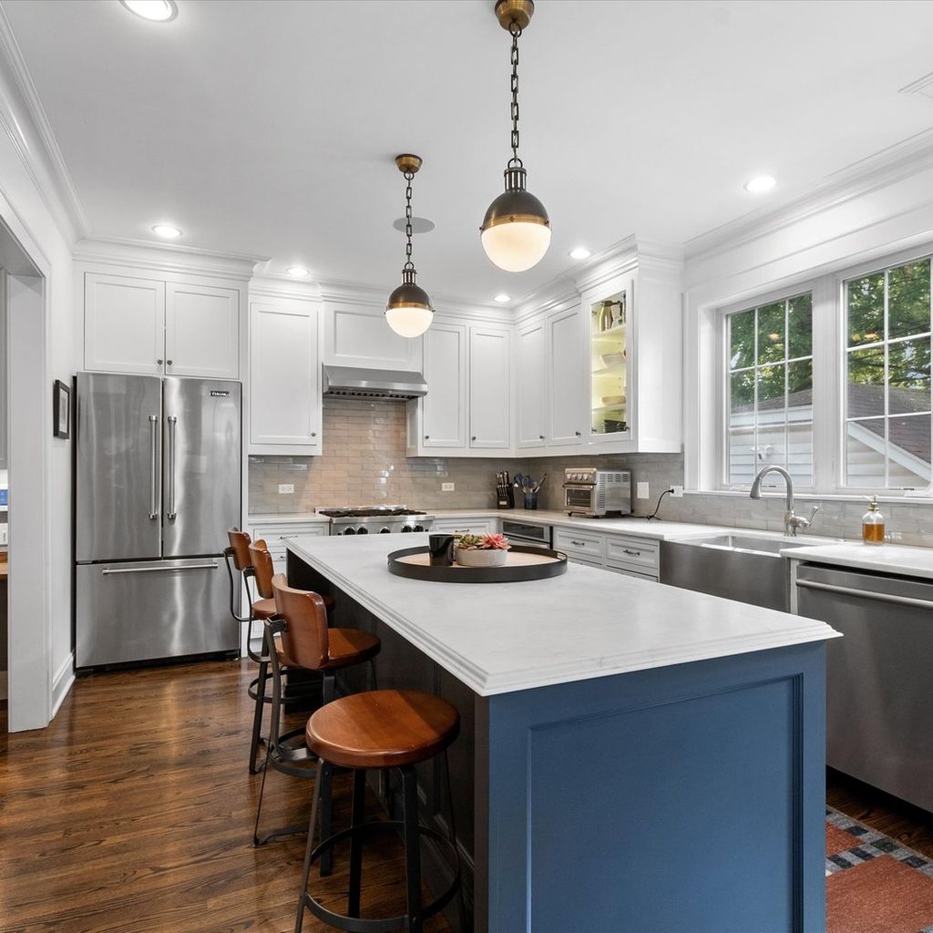 This fully renovated and exceptionally decorated home offers the perfect blend of charm and thoughtful design throughout - and is bigger than it looks! An extensive renovation by Scott Walker/McMurray Construction included a timeless kitchen/primary suite addition and re-configuring of the first floor to add a mud room, desk area and powder room. The casual living room with fireplace and built-ins has a large window overlooking the quiet tree-lined street. A stunning formal dining room seats 8 or more and conveniently leads to the custom kitchen with table space, a large island with seating, beverage refrigerator and high end appliances. With abundant storage and wonderful circulation space, this kitchen is perfect for entertaining - and leads to the new maintenance-free Trex deck with seating. Upstairs you will find a sun-filled primary suite with double walk in closet and beautiful primary bath. The second floor offers two additional nicely-sized bedrooms and a renovated hall bath. The lower level offers a casual family room, laundry and generaous storage. Fantastic location just 3 blocks to Central Street Metra, shops & restaurants. Don't miss the annual block party and easy walk to schools. Welcome home!