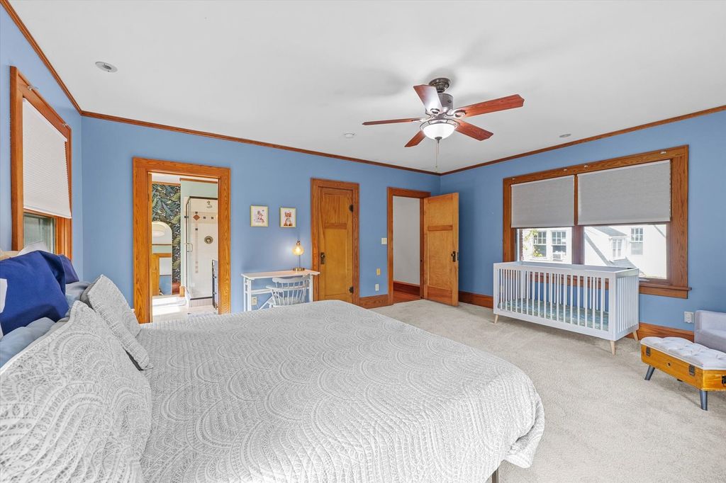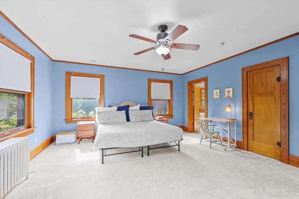 Welcome to 712 S Elm Blvd - full of character, light, and charm! This 1923 brick home sits proudly on a brick-lined street across from Harris Park. Inside, you'll find original hardwood floors, gorgeous windows, and two inviting living areas that make this home warm and welcoming. The second floor features three bedrooms and two updated bathrooms, while the finished attic on the third floor offers a flexible bonus space currently used as a fourth bedroom. Enjoy your morning coffee on the large front porch or host gatherings in the spacious fenced backyard with a brick patio. An unfinished basement and 2-car garage provide ample storage and future potential. Combining historic charm with thoughtful updates, this home offers the perfect blend of classic style and modern comfort, all in a prime location directly across from the park.