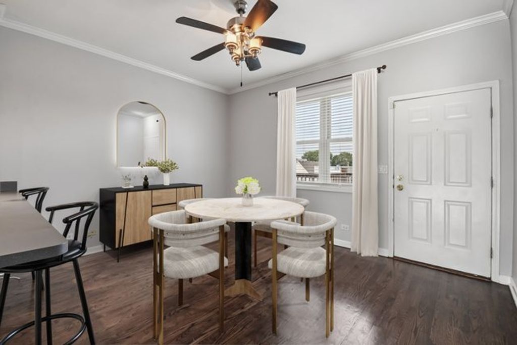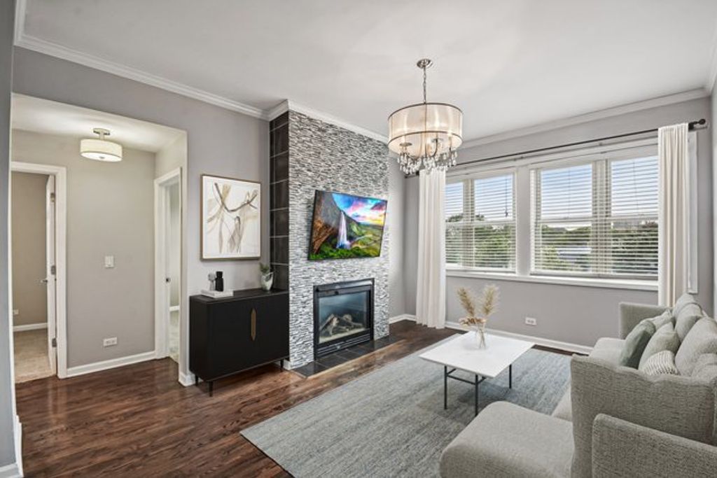 Location, location, location! This airy, sun-drenched top-floor 3BR/2BA condo with soaring ceilings is perfectly situated in North Kenwood. Bright and spacious living room features a stunning floor-to-ceiling stone fireplace and flows seamlessly into the dining area, creating an ideal space for entertaining. The large kitchen offers a peninsula with breakfast bar, stainless steel appliances and additional space for a table or sitting area. The primary suite includes dual closets and a private ensuite with a relaxing soaking tub. Two additional bedrooms share a well-appointed hall bath. Step outside to your expansive private deck-fully rebuilt in 2024-or enjoy the shared common yard. Additional features include one detached garage space, a large private storage room in the basement and gated front entry. The building completed staircase repairs in 2024. Unbeatable location - just two blocks from Lake Shore Drive, the lake front, 47th Street Metra & multiple bus lines. Enjoy the convenience of being minutes to grocery stores, dry cleaners, shopping, fitness centers and restaurants!