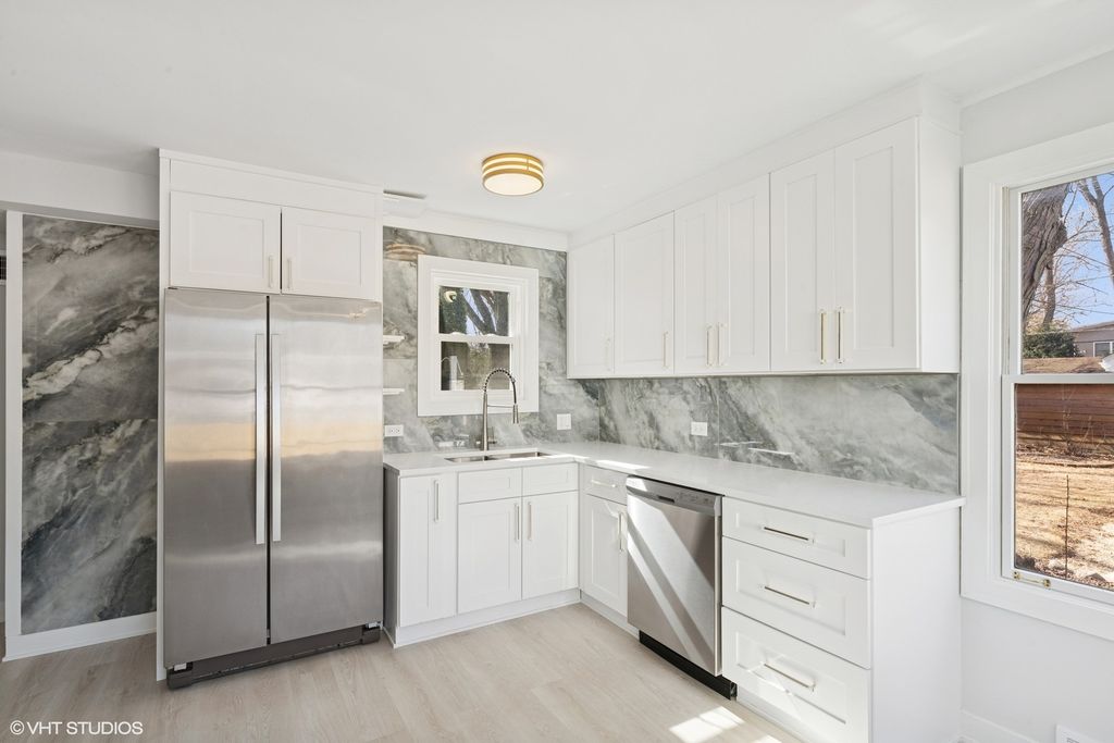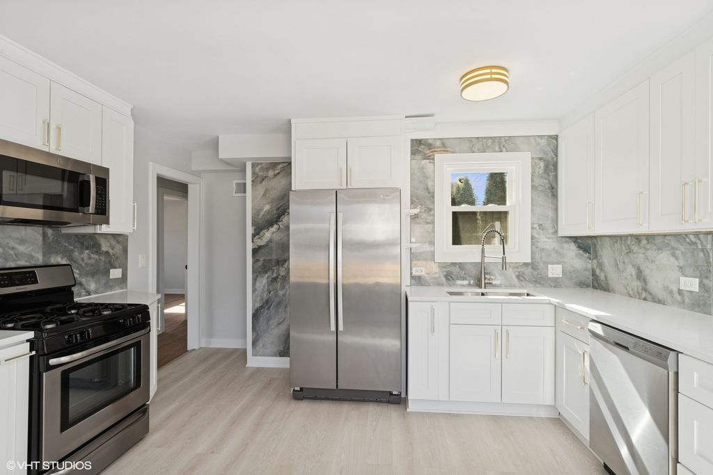 Welcome home to this sunny, bright, and totally renovated Cape Cod in the heart of Sherwood Forest. Renovated by local rehabber, but so many vintage features preserved. Original hardwood flooring refinished, all new flooring in kitchen and baths, all new paint, doors, trim, casing, lighting fixtures. Flooded with natural light from all the brand new windows, all this sets the tone for your new home. Living room with large picture windows, separate den (which can be used as a dining room or 4th bedroom) with sliders out to the brand new deck and picturesque yard. First floor bedroom and full bathroom - updated with all new fixtures. The kitchen is what dreams are made of, with all new stainless steel appliances, marble counters, and a marble backsplash- plus room for a table! Upstairs, you will find the charm of a cape cod, with interesting lines, timeless built-ins, two bedrooms, and a gorgeous new bathroom. Finally, the basement is surprisingly large, with a finished rec room, and large utility room with ample storage. Gorgeous and DEEP backyard with large wooden deck, freestanding garden planters, area for a firepit, and a storage shed. Detached 2.5-car garage has all new drywall, electrical, and lighting. In addition to all of the wonderful cosmetic updates, this home features newer electrical, newer mechanicals, new driveway, both back and side deck are new, newer plumbing, and so much more. Come fall in love today! Coveted District 112 grade schools, including Sherwood Elementary School and Edgewood Middle School. A Sherwood Forest address also allows you to have a choice of Deerfield or Highland Park High School. Walking distance to Arbor Park and a short hop, skip, and jump from Downtown Highland Park and all of the business on Deerfield Road.