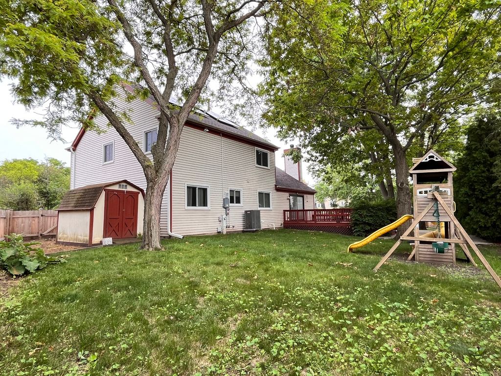 Best interior location in an amazing cul-de-sac with a premium extra-large private resort retreat backyard. This wonderful former model home is an upgraded 5 bedroom, 3 1/2 bath home that features a large finished basement. Great open floor plan for everyday living and formal entertaining. The updated eat-in kitchen with all stainless steel appliances is open to the family room features a beautiful fireplace and a large patio door looking at the amazing backyard with a concrete patio and deck. 2 outdoor sheds a fire pit and playset make the backyard a dream. A separate elegant formal dining room is perfect for holiday gatherings. The main level also offers an inviting foyer and a real mudroom with access to the garage and the basement. The second floor features four spacious bedrooms with an exceptional primary bedroom featuring its own bath and a large walk-in closet (originally a 5th bedroom on the second floor) can also be used as a upstairs laundry room. The home also features an amazing finished basement with a spacious recreation room including a bedroom, and a full bath new carpet installed (June 2025). Also, newer windows, hardwood floors on the second floor, brand new garage door openers, and a newer sump pump. Complete a/c and furnace in 2024. New Roof with solar panels 2024 (solar leased $118 a month). Cedar fence 2024. Top Award-Winning Schools with Stevenson High School. Ideal location for commuters with literally minutes to walk to Metra and award winning Stevenson High school, parks, dining, shopping all close by Welcome Home! Home is being sold as is.