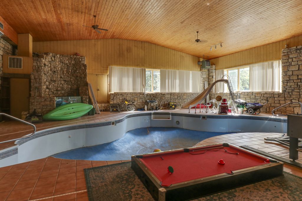 Calling all buyers searching for something truly extraordinary in Bloomington. This one-of-a-kind property sits on over 5.2 acres in town and offers an incredible combination of space, updates, and amenities you will not find anywhere else. Featuring 7 bedrooms and 5.5 bathrooms, this home is ideal for large families, multi-generational living, or anyone craving room to spread out. Step inside to discover a massive 52x69 indoor pool room complete with a 26x36 inground pool, wet bar, sauna, full bath, and a beautiful waterfall feature with a built-in fish tank, creating the perfect space for entertaining. The pool area is being sold as is, but the possibilities are endless for recreation and relaxation. Additional highlights include a 6-car (3 tandem) garage, 2 kitchens, 2 laundry rooms, multiple fireplaces, and tons of recent updates. The home has been beautifully remodeled over the last few years, featuring a $30,000 tri-zoned HVAC system installed by Nordine in 2021, new ductwork, updated electrical, new soffit and fascia, and two newer water heaters (75-gallon and 45-gallon). Updates also include bedroom remodels, bathroom remodels, the addition of a second kitchen, and newly added bedrooms. This home also features a high-grade metal tile roof, designed to look like traditional shingles but built from durable, weather-resistant steel. Known for its longevity, energy efficiency, and low maintenance, this type of roof can last 50 years or more, offering both beauty and peace of mind. Enjoy peaceful views of the large pond, creek, and mature trees from your upstairs balcony. Outdoors, you will find a new saltwater pool installed in 2023 with a new deck, plus plenty of space for gardening or even chickens since the property is unincorporated. This home is on public water and public sewer. The seller is currently installing a new sewer line from the home to the road, which will be completed prior to closing. Whether you are looking for a home with an in-law suite, a multi-generational layout, or simply a unique private retreat in the heart of Bloomington, this property is truly one of a kind.