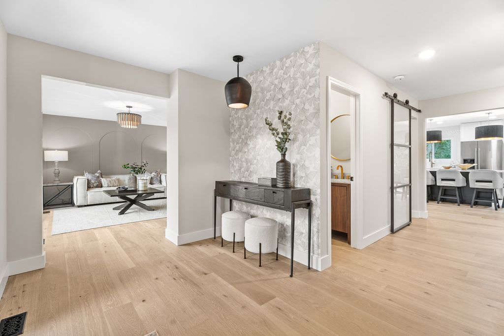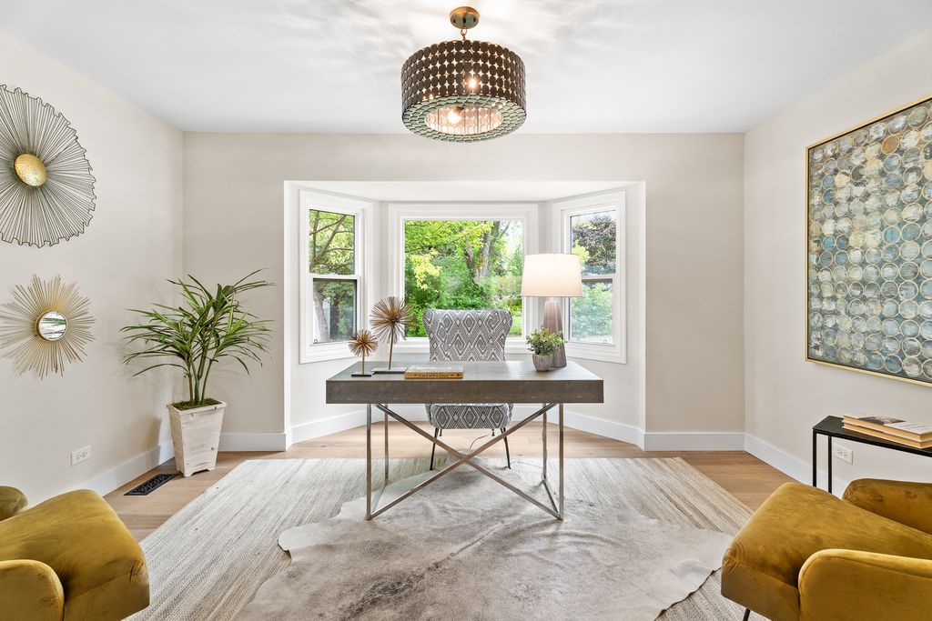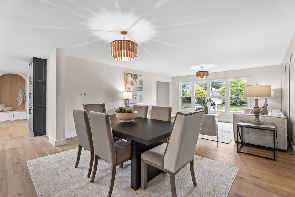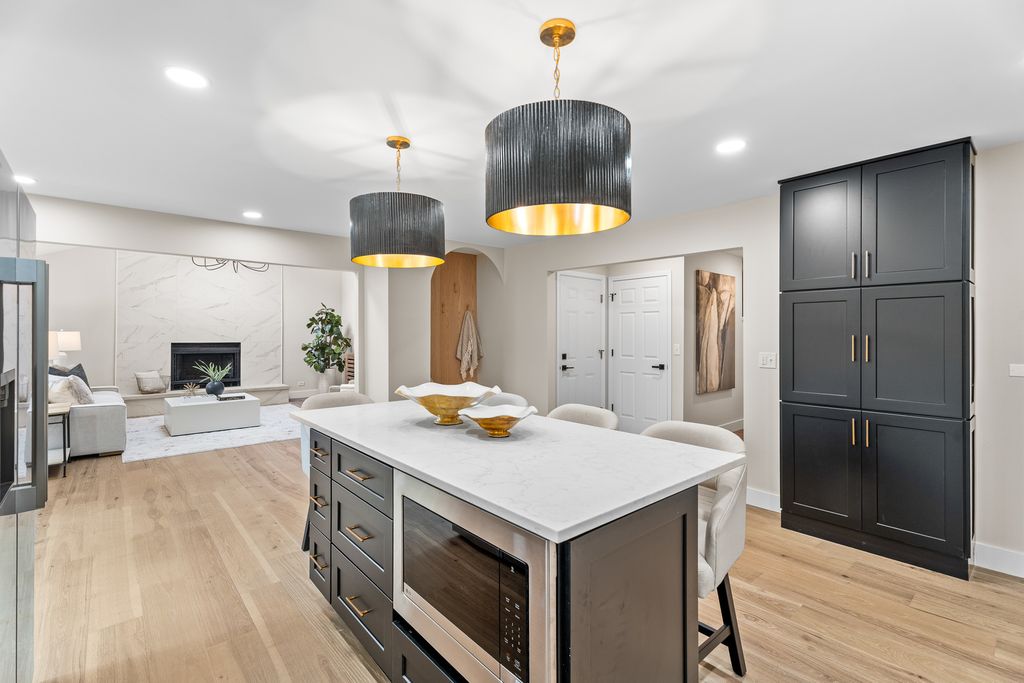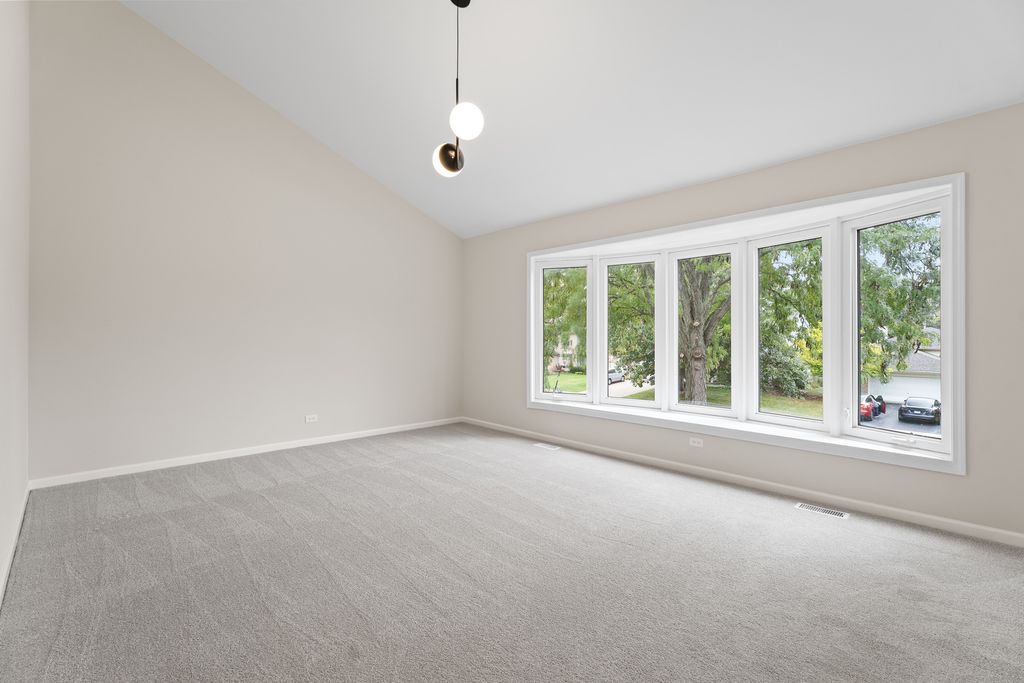 Welcome to this stunning, spacious Naperville home located in an established and convenient neighborhood. Completed October 2025, this thoughtfully remodeled 3,180 square foot home features 4 bedrooms, 2 full baths, 1 half bath, 2 flex-space areas, and a 2-car attached garage. Upon opening the double front doors, the gold ginkgo leaf wallpapered foyer leads you to the open layout featuring new warm wide-plank hickory hardwood flooring that provides light, function, and durable years of use to the entire first floor. The refinished stairs feature wrought iron tune-fork style spindles. White interior doors with black hardware provide continuity and polish throughout. The open-plan kitchen features plentiful dove 42" upper cabinets with custom exhaust hood and trim, white glossy tile backsplash, and expansive Calacatta Fioressa quartz counters. The new stainless appliances include fridge, dishwasher, and slide-in gas range as the crown jewel. Enjoy the 8' onyx island with new microwave and seating four easily, lit by stunning black and brass pendants. A cabinet pantry provides ample storage. Near the entry to the garage and basement, find the laundry room with washer and dryer, convenient drop-spot arched mud locker with bench, hooks, and storage, as well as the redone half bath. The vaulted ceiling and dual skylights in the family room bring amazing light that highlights the wood-burning fireplace covered with large format Kelli Fontana Carrara ceramic tile with a beautiful natural limestone hearth. The modern, aged brass chandelier completes this large gathering space. Dining room includes a gold tiled dry bar with wine fridge and additional onyx cabinetry highlighted by elegant dark brass and glass lighting. Living room is open to dining area and features an arch wall as the eye-catching element, accented with dramatic dark brass lighting. Double French doors lead to office/den/flex space with plentiful natural light. The wide open, bright, and airy plan of this home works for every need of today's busy homeowners, whether for everyday use or entertaining. Upstairs the primary bedroom with vaulted ceiling and crystal ceiling light provide a wide open and spacious feeling with large closet with existing, plentiful built-in fitted storage including safe. The redesigned ensuite features furniture-style warm mahogany vanity with double sinks and gold sconces, luxurious towel warmer, a custom 5.8' x 4.4' glass shower with niche done with exquisite eggshell polished marble hex tile, rainfall shower with handheld, striking black chandelier, waterproof luxury vinyl plank flooring, and toilet. Each of the remaining three bedrooms have new carpeting, closets with new shelving and motion-sensor lights, new wall-switch activated ceiling light fixtures. Hall bath glows with skylight and ice blue matte ceramic tile over new tub, Carra quartz countertop, furniture-style cabinetry with double sinks, and waterproof luxury vinyl plank flooring. Hall linen closet is nearby. A versatile, loft space open to family room with vaulted ceiling, plentiful light, and hardwood flooring can be dedicated as a play area, office, guest space, library, or whatever your heart desires. For peace of mind, 2025 installations include many new windows, new driveway, and voice annunciator interconnected smoke/carbon monoxide detectors. Private backyard includes patio. The basement is a full footprint of the house, unfinished with full bath plumb-ins, two sump pumps, and ejector pit, ready for your vision. Zoned for Indian Prairie School District 204 schools: Metea Valley High School, Thayer J. Hill Middle School, and Longwood Elementary School. Easy walk to elementary school, several parks, and Route 59 Metra train station. This move-in ready home provides quick access to I-88, Metra, shopping, parks, private schools, shopping, forest preserves, and more. This reimagined home is located in a sought-after, convenient location in an established neighborhood.
