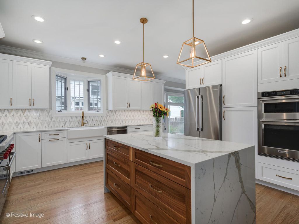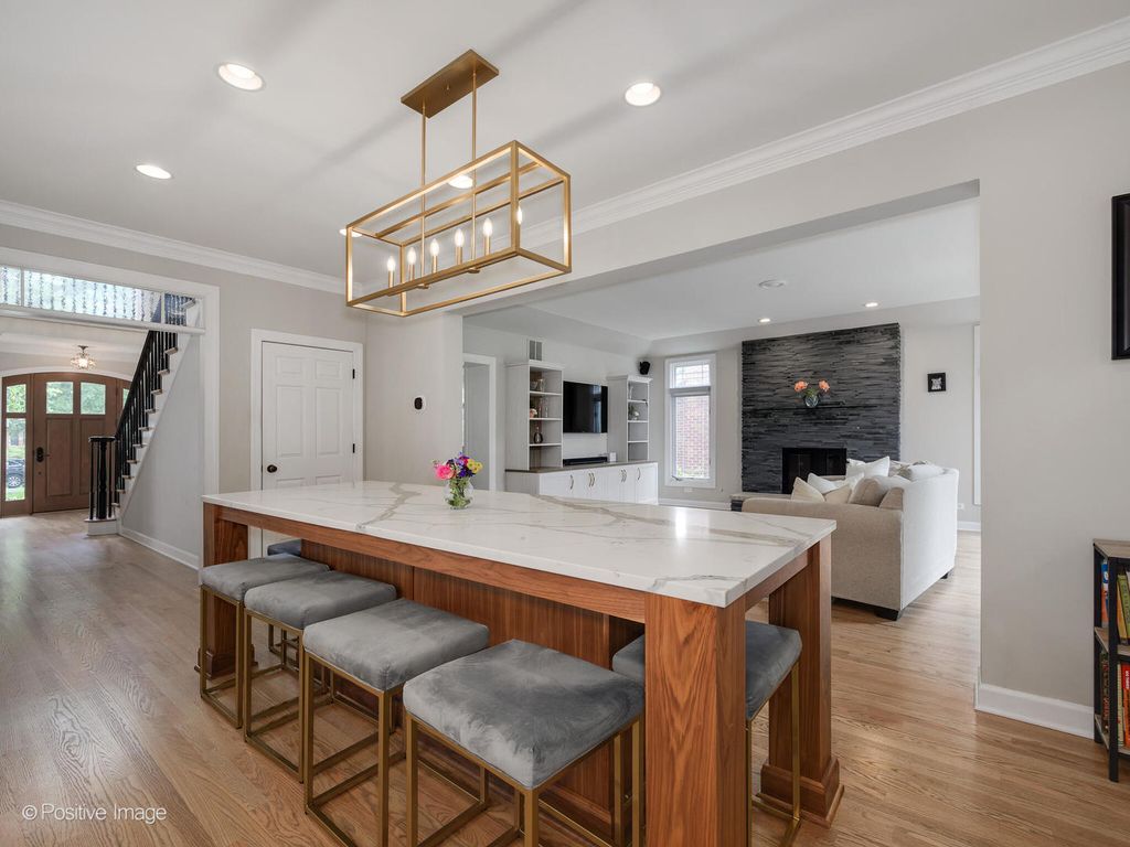 Impeccably maintained and beautifully renovated, this brick and cedar home pairs timeless design with modern sophistication at every turn. From the moment you enter, the grand two-story foyer opens to light-filled living and dining spaces adorned with custom built-ins and expansive windows that overlook the beautifully landscaped front and back yard. The stunning kitchen is the heart of the home, anchored by two custom islands that create an incredible entertaining hub and offer the perfect balance of function and style. All new high-end appliances, a marble backsplash, and an expansive walk-in pantry complete this chef's dream space, which flows seamlessly into the breakfast/dining area and inviting family room. A private office provides a quiet work-from-home option, while the true mudroom with custom lockers and direct access to the oversized attached garage ensures everyday convenience. Upstairs, four spacious bedrooms and three full bathrooms include a remarkable primary suite with a dream-worthy walk-in closet and a luxurious renovated bath with dual vanities, an oversized shower, and premium Kohler finishes. One of the additional upstairs full baths has also been thoughtfully renovated, adding to the home's turnkey appeal. The finished lower level offers an expansive recreation room, a flexible playroom or bedroom, a full bath, and an extraordinary amount of storage. Additionally the unfinished attic presents exciting potential for future expansion or simply great storage space! Outdoor living is equally impressive with two patios, a charming pergola, and manicured landscaping on a deep lot in a highly sought-after Western Springs location.
