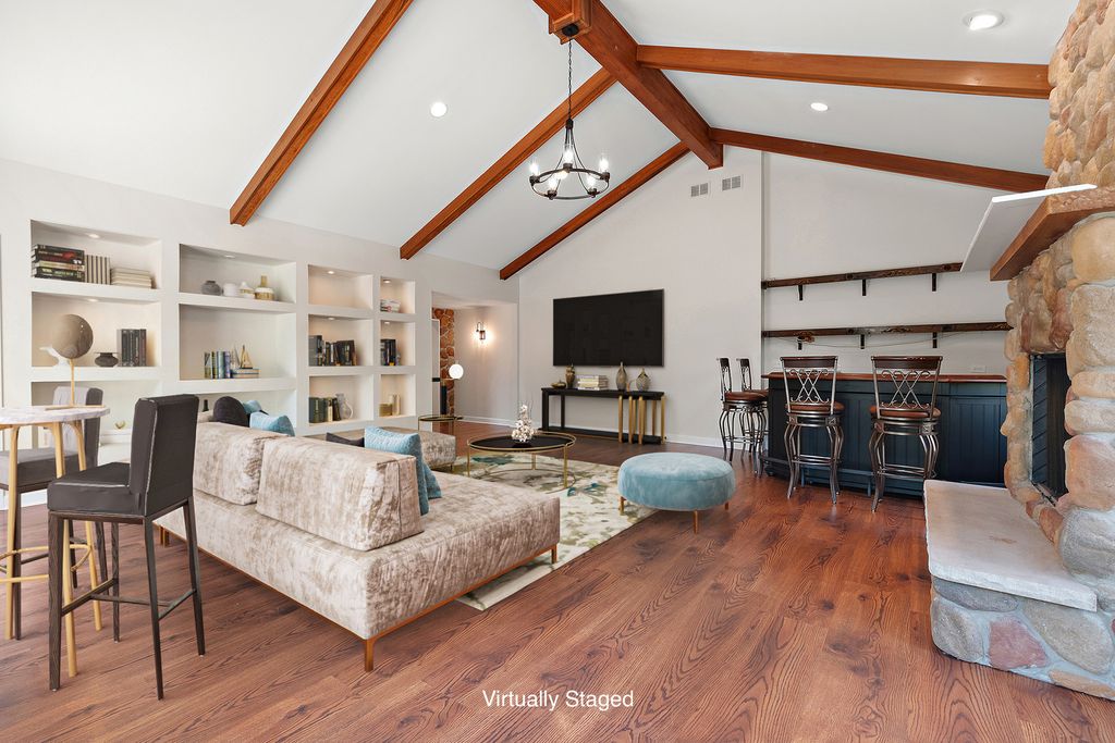 This expansive 6-bedroom home features numerous updates and is thoughtfully designed for both comfort and entertaining. Step into a bright, airy interior featuring a spacious dining area ideal for gatherings, along with a charming sitting space by the buffet, perfect for a cozy coffee station to start your day. The stunning great room features a dramatic stone fireplace and a built-in bar. In contrast, an additional lower-level family room with a warm, inviting fireplace provides extra space for everyday living. The luxurious primary suite is a true retreat, complete with vaulted ceilings, a fireplace, and a beautifully updated private bath. Two additional fully renovated bathrooms enhance the home's appeal, complemented by fresh paint throughout, including trim and doors, as well as nearly all new fixtures, new carpet, a new oven/range, and a dishwasher. For added peace of mind, the plumbing and electrical systems have been professionally inspected and updated. The exterior has also received attention, with fresh paint where needed and aluminum-wrapped back windows for added durability. Major mechanical systems are less than one year old, featuring a central air unit, a furnace, a sump pump, and an ejector pump. Relax and entertain outdoors on the expansive brick-paved patio, featuring a beautiful built-in brick fireplace. This move-in-ready home is packed with updates and waiting for you to enjoy!
