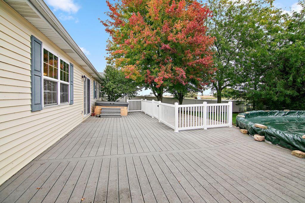 Welcome to this well maintained 3-bedroom home with a full basement, Open-concept floor plan features vaulted ceilings, creating a spacious and inviting atmosphere throughout the main living area. The eat-in kitchen is a delight with granite countertops, a pantry, and plenty of cabinetry for storage. The primary suite offers a private retreat with a walk-in closet and a beautifully tiled shower in the master bath. The third bedroom includes a unique loft with stairs, providing a fun and functional additional space for a home office, play area, or creative nook. The full basement is roughed in for a bath and offers abundant storage or the perfect opportunity to finish for additional living space. Enjoy the 21'x21' heated garage, ideal for year-round use. Step outside to a backyard built for entertaining and relaxation - complete with a stamped concrete driveway and patio, above-ground pool, and hot tub surrounded by a composite deck. The fenced yard backs to Village-owned green space with walking paths, offering privacy and scenic views. Don't miss this rare opportunity to own a move-in ready home in Manteno