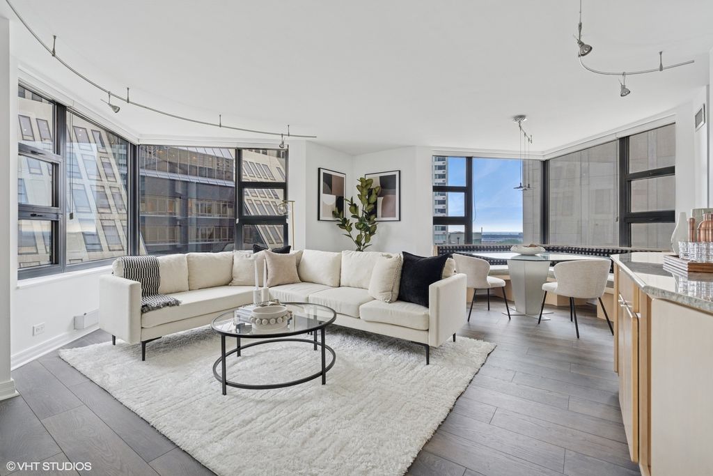 LOCATION, LOCATION, LOCATION! This OVERSIZED CORNER unit with gorgeous city and lake views in the vibrant heart of Streeterville. A truly walkable lifestyle where everything is just steps from your front door! This beautifully designed 2 BED / 2 BATH home features an expansive open-concept kitchen, living, and dining layout, a custom-built bar and complemented by generous storage solutions throughout! The upgraded chef's kitchen showcases modern granite countertops, stainless steel appliances, and abundant cabinetry. Retreat to the ENORMOUS primary suite complete with a walk-in closet and a spa-like en-suite bath featuring refined finishes. A spacious second bedroom is situated conveniently near the second full bathroom, offering privacy and flexibility for guests or a home office or BOTH! Residents enjoy access to full-service amenities including 24-hour door staff, an indoor pool, jacuzzi, two expansive sun decks, resident lounge, a fully equipped fitness center, sauna, and on-site management. PRIME LOCATION! Just moments from Michigan Avenue, the Lakefront, Riverwalk, and a short stroll to Northwestern University and Hospital- world-class dining, shopping, coffee shops, parks, and the BEST OF CHICAGO'S NIGHTLIFE. Also within walking distance of NAVY PIER, LAKE MICHIGAN, the LAKEFRONT TRAIL, and more. Excellent access to LAKESHORE DRIVE, expressways, and PUBLIC TRANSPORTATION make commuting a breeze. Garage parking space included in the price!