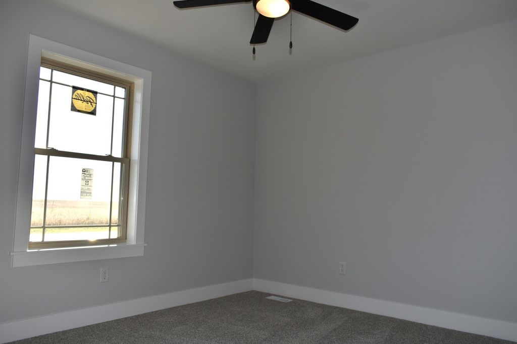 Quality built by local builder with better than average materials! Located in town, but with country views offering covered front porch facing east perfect morning coffee. Super open floor plan everyone wants, solid surface kitchen countertops & quality soft close cabinets with dovetail drawers, master suite with walk-in shower, main floor laundry, full basement w/egress window & rough-in for bath whenever you're ready to finish the basement! Private patio in back for grilling & relaxing.
