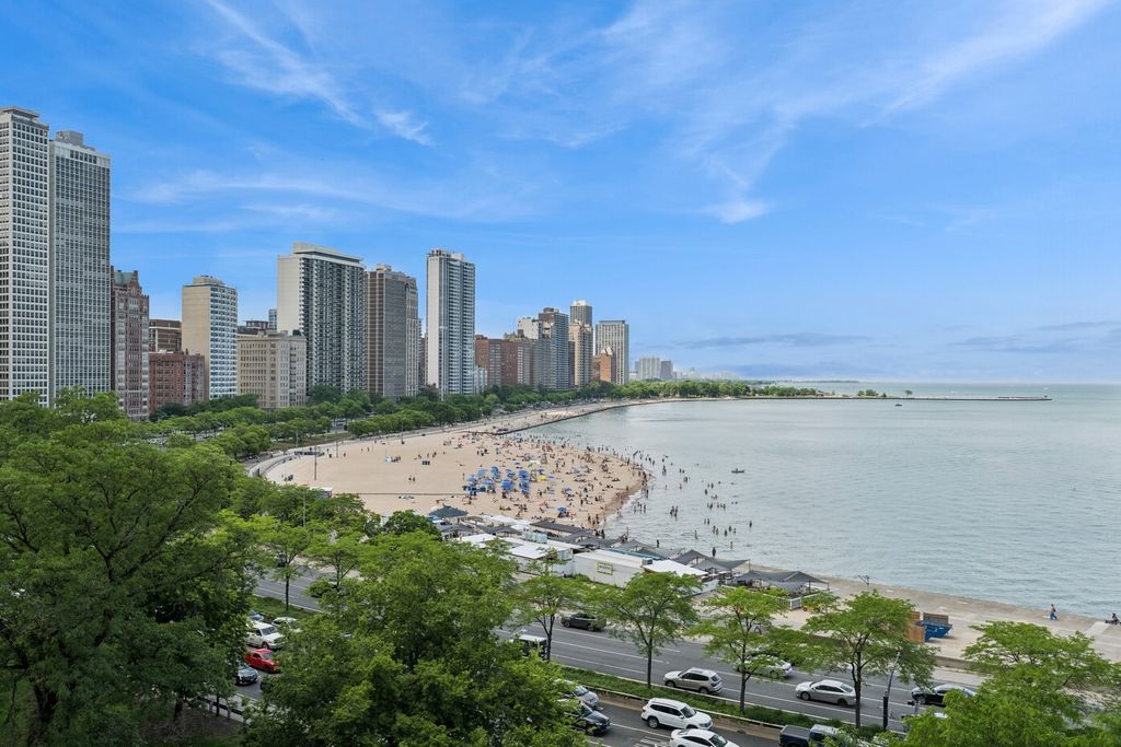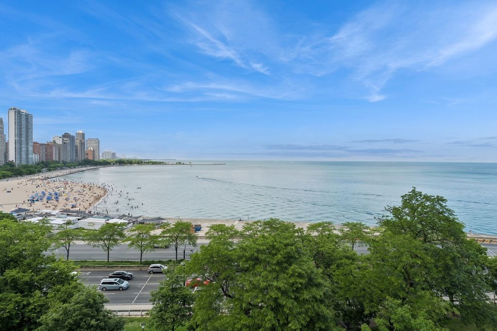 For the first time in 8 years, a rare opportunity presents itself on the coveted East Lake Shore Drive with this sophisticated, fully renovated 3-bedroom, 3-bath residence. Unit 8C offers unobstructed, postcard-worthy views of Lake Michigan and Oak Street Beach from both the formal living room and master suite, all nestled within one of the few condominium buildings on this historic stretch, most others being co-ops. This home has been thoughtfully updated with a seamless blend of classic elegance and modern luxury. Designed by Donna Mondi Interior Design (2022), the residence showcases impeccable craftsmanship, custom finishes, and curated details throughout. The Chef's kitchen is a stunning space with Taj Mahal quartzite counters and backsplash, custom island with pullouts and seating, Calia Stone artistic honed flooring, and premium appliances including a Sub-Zero 48" side-by-side refrigerator, Wolf 36" gas range, Fisher & Paykel dish drawer, Sharp microwave drawer, and Kallista faucet with Kohler undermount sink, bedrooms are custom-painted with Farrow & Ball paint and fitted with Rexx Rug carpeting, plantation-style Norman shutters add warmth and privacy. All 3 baths have been fully renovated & highlights include Saint Laurent honed marble and Caesarstone finishes, custom vanities, Waterworks and Kallista fixtures, original plaster ceiling and crown moldings in the living room, hardwood flooring in main living and dining areas, and an impressive foyer with custom cherry wood and marble inlay, custom built-in shelving in the dining room hides a sleek wet bar, with French doors opening to a Juliet balcony that overlooks a tranquil courtyard. Five new soundproof Marvin windows in the living room and primary bedroom enhance quiet and insulation. In-unit Miele 24" washer and dryer with heat pump and steam finish, new water heater (2025), large walk-in closets in all three bedrooms, 1 valet parking space included with complimentary weekly car wash, 1st floor storage unit, pet-friendly building with 24-hour door staff, this home is a masterclass in elevated city living. East Lake Shore Drive offers not only stunning architecture and serenity, but also proximity to the best of Chicago's dining, shopping, and lakefront. Experience the timeless charm and unparalleled attention to detail that make Unit 8C truly one of a kind.