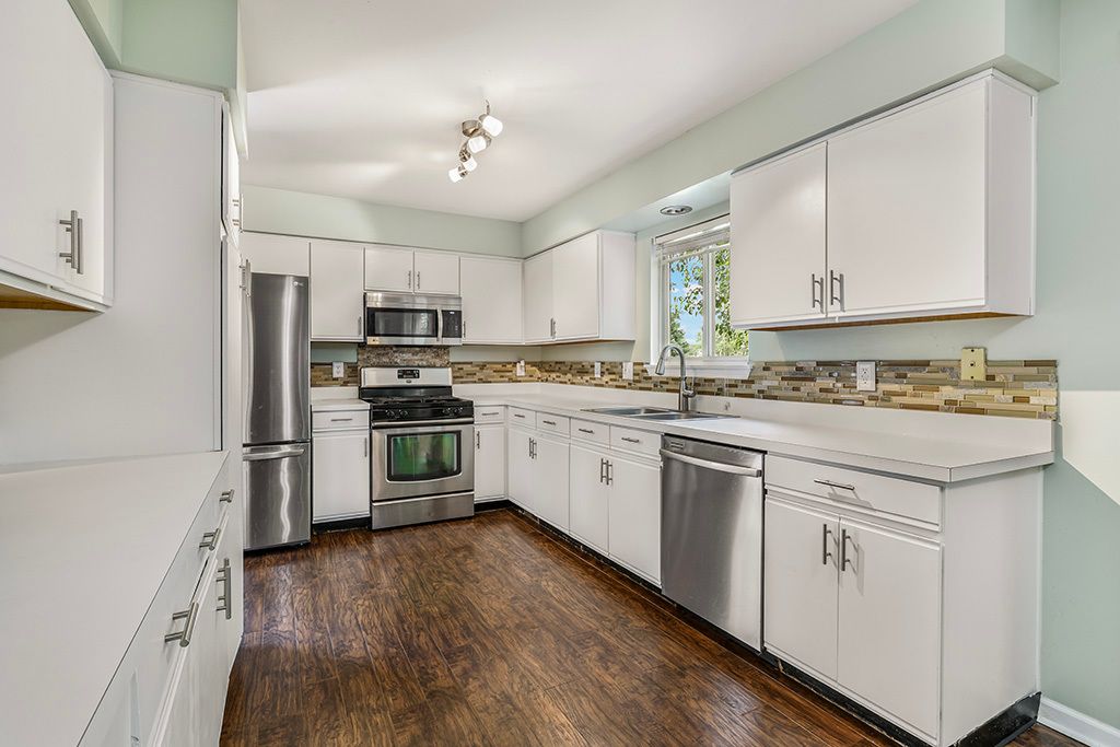 Situated on a premium golf course lot that backs to a serene pond, nestled within the desirable Lakewood Falls community. Lakewood Falls offers year-round events such as fireworks, a visit with Santa, and an Easter egg hunt. The exterior of the home features blue window shutters complemented by blossoming landscape. Inside, the highly functional floor plan is filled with natural sunlight and new luxury laminate flooring throughout. The formal living room and dining room are ideal for hosting family gatherings. The beautifully updated kitchen includes painted cabinetry, hardware, stainless steel appliances, and a quaint eat-in area. The kitchen and family room flow seamlessly which is ideal for entertaining and the family room has a stunning brick fireplace. The second level offers a spacious master retreat with a fully updated bathroom. Two additional bedrooms on this level have ample closet space and share a full bathroom. The basement offers potential for a fourth bedroom, playroom, or office, along with a laundry area and a massive crawl space for extra storage. The tranquil backyard includes an expansive brick patio, pond views, and golf course views. This home is perfect for any buyer seeking a great location and amenities and close to WALKING TRAIL. Updates include; Water Heater (2025), Kitchen appliances, Microwave (2024), Fridge (2022), Sump Pump (2021), HVAC systems, Humidifer, laminate flooring, Washer & Dryer (2020), Painted kitchen cabinetry hardware (2019), Master bath remodel and lighting throughout (2018).