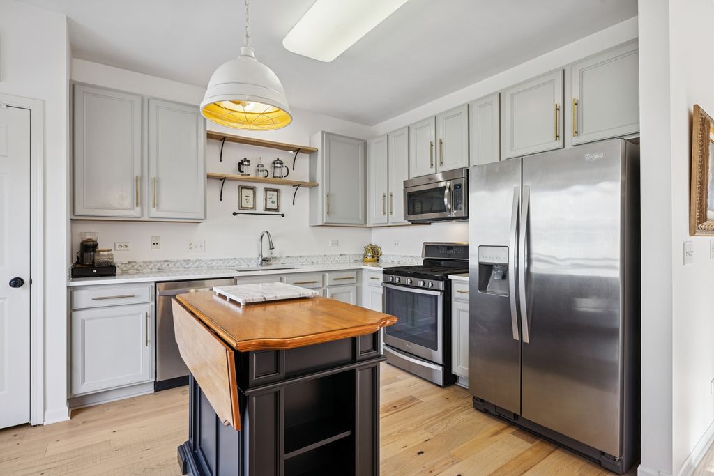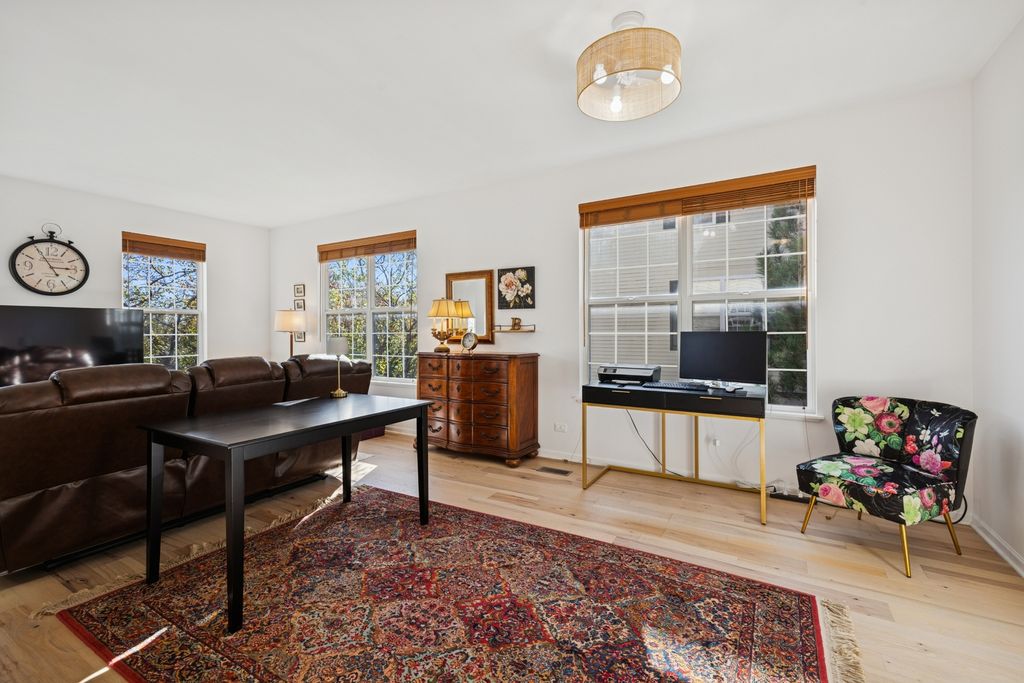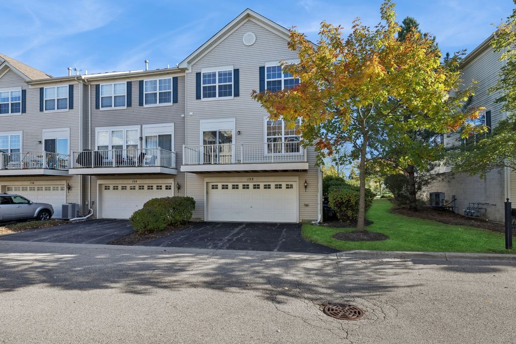 Welcome to this stunningly updated end-unit, three-story townhome--located at 152 Jackson St in the highly sought-after Timber Trails subdivision of Gilberts! Welcome home to the largest model in the complex! This move-in-ready home features 3 spacious bedrooms on one level, 2.5 bathrooms, and a wide-open floor plan designed for modern living. Step inside the impressive two-story foyer and discover 9-foot ceilings on the main level that create a bright, airy feel throughout. You will love the newer light and bright engineered wood flooring. The large eat-in kitchen is a showstopper with quartz countertops, a marble tile backsplash, 42-inch cabinets, a pantry, an extra-deep stainless steel sink, and a large movable island, plus sliders leading to a private balcony-perfect for morning coffee or evening relaxation. The open-concept living and dining areas are ideal for entertaining and feature a cozy gas fireplace that adds warmth and charm. Upstairs, the luxurious primary suite offers a vaulted ceiling, two walk-in closets, and a private bath, while the additional bedrooms are generously sized and filled with natural light. The lower-level recreation room provides flexible space that can be used as a home office, playroom, or gym, adding to the home's versatility. Completing this incredible property is an oversized 2.5-car garage offering plenty of storage. Conveniently located near parks, (there is even one across the street) trails, restaurants, and I-90! This exceptional home blends spacious design, quality finishes, and unbeatable location for the perfect combination of comfort and convenience.