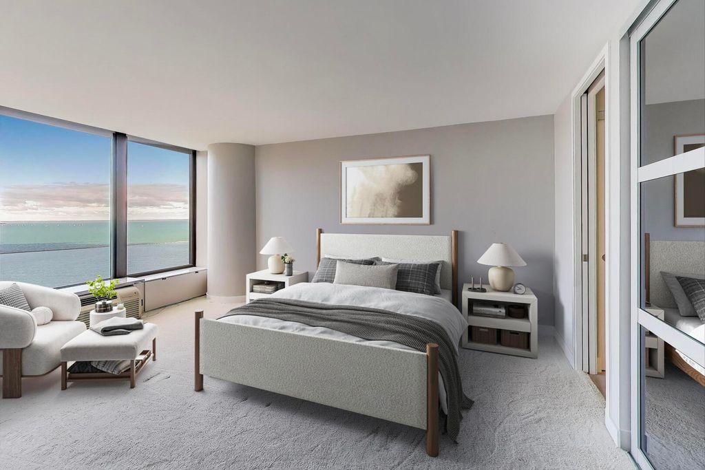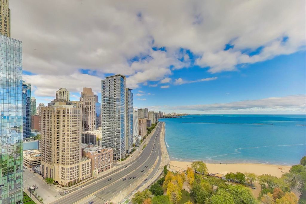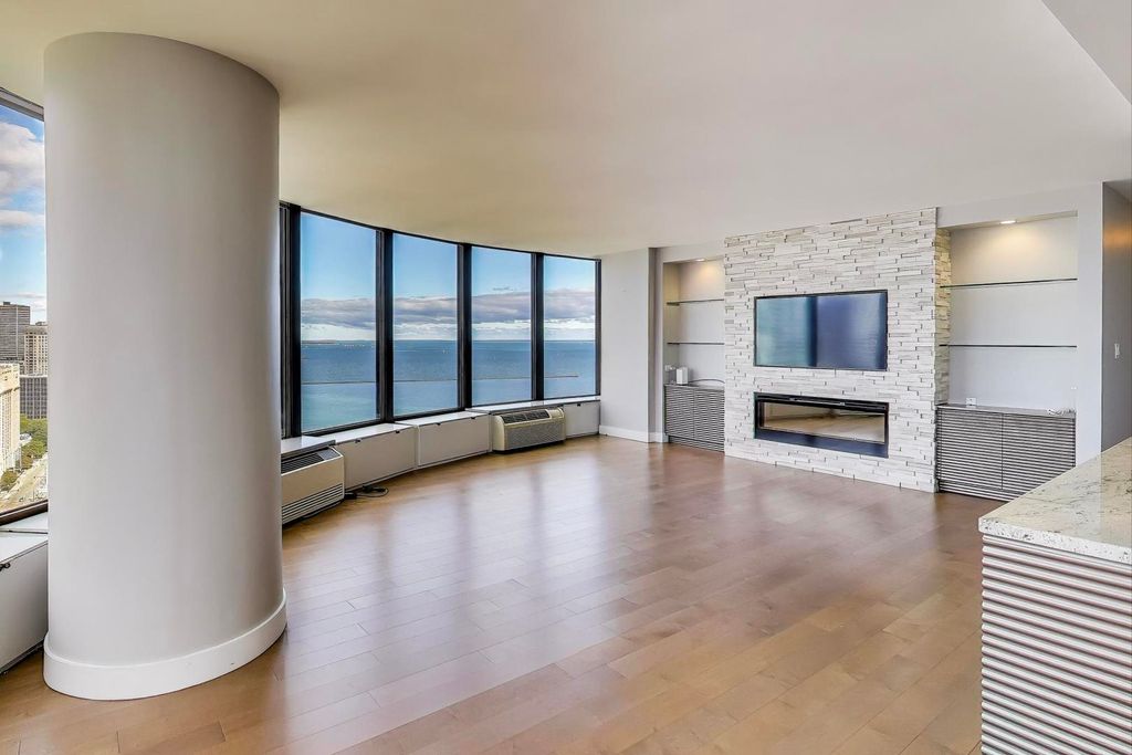 Stunning Corner Residence at Lake Point Tower. Experience breathtaking panoramic views of Chicago's skyline, Soldier Field, the Chicago River, and Lake Michigan from this highly desirable corner home at Lake Point Tower. Completely remodeled in 2014, this exquisite two-bedroom, two-bathroom residence combines timeless luxury with modern sophistication. Enjoy custom Neff cabinetry, granite countertops, a sleek island, and top-of-the-line Thermador appliances. The open living room is perfect for entertaining, featuring a custom stone media wall, Neff cabinetry, and a modern fireplace - all framed by floor-to-ceiling windows overlooking the city and lake. The primary suite offers lake views, a spa-inspired bath with double Carrara marble sinks, and a jetted shower. Lake Point Tower offers world-class amenities including 24-hour door staff, indoor and outdoor pools, fitness center, racquetball court, business center, and a private 2.5-acre park with lagoon, waterfall, grills, and children's play area. Live steps from the Magnificent Mile, Navy Pier, and Ohio Street Beach in one of Chicago's most iconic addresses.