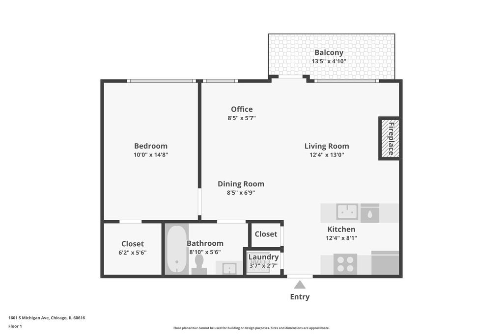 Welcome to this light-filled 1 bed, 1 bath condo in the vibrant heart of the South Loop! Enjoy stunning skyline views through oversized windows that fill the open-concept layout with natural light. The spacious living area features a gas log fireplace for cozy evenings, and the adjoining dining area easily accommodates a large table-or can be used as a flexible office space to suit your lifestyle. The kitchen is outfitted with granite countertops, stainless steel appliances, a breakfast bar, and rich cabinetry. The oversized bedroom includes a generous walk-in closet, and beautiful hardwood floors flow throughout the unit. In-unit washer & dryer provide added convenience. Step out onto your private balcony-perfect for relaxing or entertaining during warmer months. Additional basement storage locker and a deeded outdoor parking space are both included in the price-a rare find in this neighborhood! The building also offers guest parking. Walk to everything the South Loop has to offer: the lakefront, Museum Campus, Grant Park, local restaurants, groceries, and public transportation. Move-in ready and perfectly located!