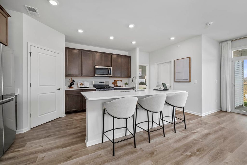 MODEL HOME FOR SALE!!! Envision yourself at 1390 Wild Tulip Circle in Bartlett, Illinois, a beautiful new home in The Grasslands community. This ranch home is move-in Ready NOW! Scenic homesite backs to an open ground and includes a fully sodded yard and covered back patio. This Clifton model home is a must see!!! It offers 1,863 square feet of living space with a flex room, 2 bedrooms, 2 baths, and 9-foot ceilings, plus 2-car garage with epoxy finish flooring. When you first enter the home, there is a secondary bedroom, full bath, and a flex room. Down the hall, you will walk into the open concept great room and kitchen. The kitchen layout includes a large island with an overhang for stools, 42-inch designer flagstone cabinetry with crown molding and soft close drawers. Additionally, modern stainless-steel appliances including washer and dryer, quartz countertops, easy-to-maintain luxury vinyl plank flooring, and most window treatment. Enjoy your private get away with your spacious primary bedroom and en suite bathroom with a raised height dual sink, quartz top vanity, and walk-in seated shower with ceramic tile walls, and clear class shower doors. All D.R. Horton Chicago homes include our America's Smart-Home Technology, featuring a smart video doorbell, smart Honeywell thermostat, Amazon Echo Pop, smart door lock, Deako smart light switches and more. Images are of actual home. Furnishing displayed in photos are not included in the purchase of the home.