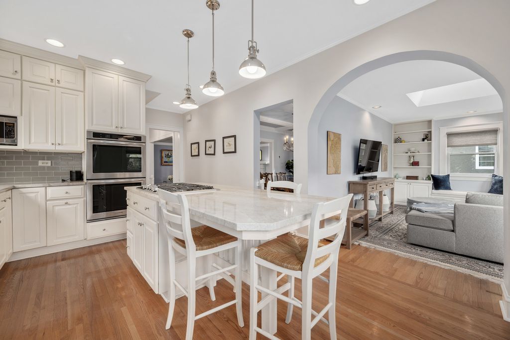 Beautifully renovated 4 bed, 3.1 bath home in the heart of Old Town Western Springs! This charming residence has been thoughtfully rehabbed from top to bottom, blending timeless character with modern style. A welcoming front porch leads to a spacious living room with built-ins and a traditional fireplace, and a large dining room with gracious moldings perfect for entertaining. The stunning chef's kitchen features a center island, marble countertops, and high-end appliances. The cozy family room offers built-in shelving and large windows overlooking the backyard. Upstairs, the primary suite boasts a new spa-like bath and generous closets, plus two additional bedrooms and a stylish hall bath. The third floor provides a private fourth bedroom or office. The basement offers a full rec room, workout space, laundry and full bath. Enjoy the beautiful paved patio and 2-car garage-all just steps from town, train, parks, and top-rated schools!