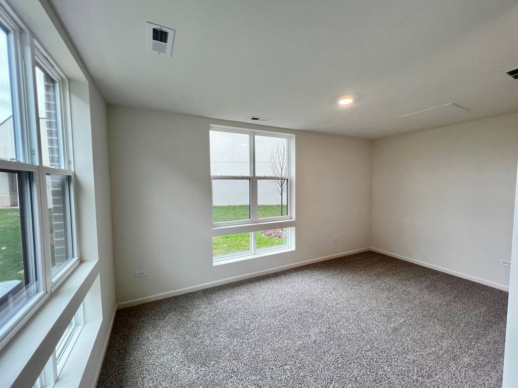 Welcome to 374 Summit Circle, Lombard, IL, an End Unit townhome located in the prestigious Summit at Yorktown community. This home includes exterior maintenance year-round as well as snow removal in the winter and will be ready for the year 2026! Enjoy the great location near guest parking and views from the center of the open green space at your front door! The Grant plan offers over 1,800 square feet of living space with 3 beds, 2.5 baths and finished flex room. As soon as you step inside, you'll be greeted by the finished flex space, perfect for a home office or additional living area. Walking up the stairs, the expansive 9ft ceilings complement the open concept design, fostering a seamless flow throughout the home. From the kitchen overlooking the dining and great room to the large, oversized, floor-to-ceiling windows flooding the space with natural light, every detail works together to highlight the modern, soft-close cabinets and enhance the bright and airy atmosphere. Experience the comfort of a spacious primary bedroom with a walk-in closet and adjoining en suite bathroom. Upstairs you'll find the laundry room, secondary bedrooms with a full second bath and a linen closet. Luxury vinyl plank flooring adorns the entry way, entire main level of kitchen, dining and family rooms, bathrooms and laundry. Decorate with the updated Craftsman style trim and 5-panel doors. This home is equipped with an innovative ERV furnace system and a tankless water heater, adding to the multitude of impressive features and quality 2"x6" construction with Hardie board siding. The townhomes also feature a convenient 2-car garage with a rough-in for an EV charger and a 2-car driveway, providing ample parking space for residents and guests. Photos are of similar home and model. Actual home may vary.