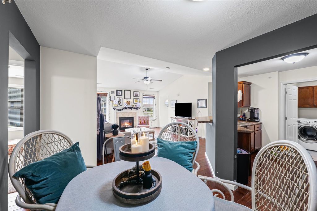 Spacious and bright second-floor condo in the desirable Stillwater Landing community! This 2-bedroom, 2-bathroom unit features an open floor plan with vaulted ceilings, hardwood floors, abundant natural light, and a cozy fireplace in the living area. The kitchen offers plenty of cabinet space and a breakfast bar that flows into the dining area, perfect for entertaining. The primary suite includes a walk-in closet and private bath. Enjoy your morning coffee or evening wind-down on the private balcony with peaceful views. Additional highlights include in-unit laundry, attached garage parking, and access to community amenities. Conveniently located near shopping, restaurants, parks, and quick access to the University of Illinois campus. Move-in ready and low maintenance!