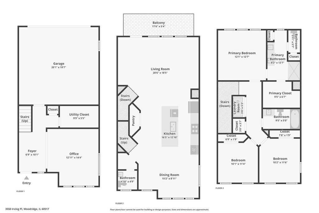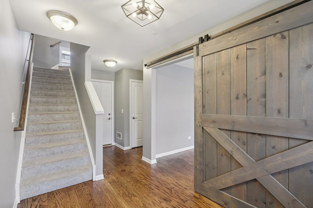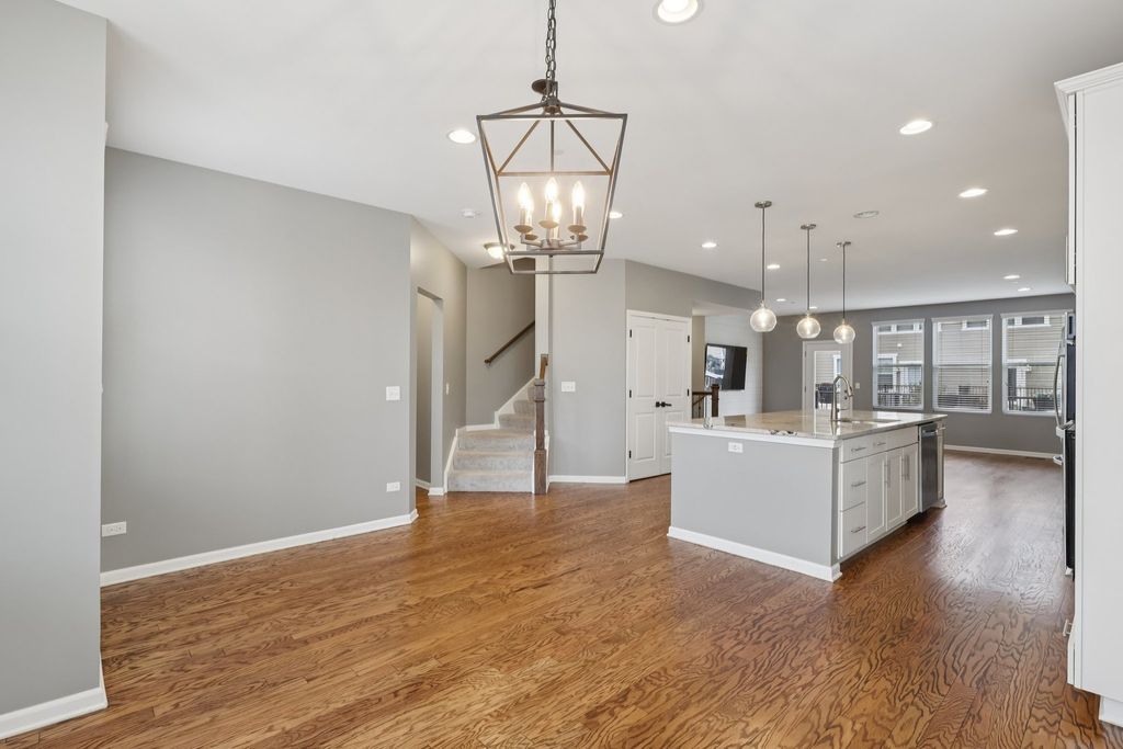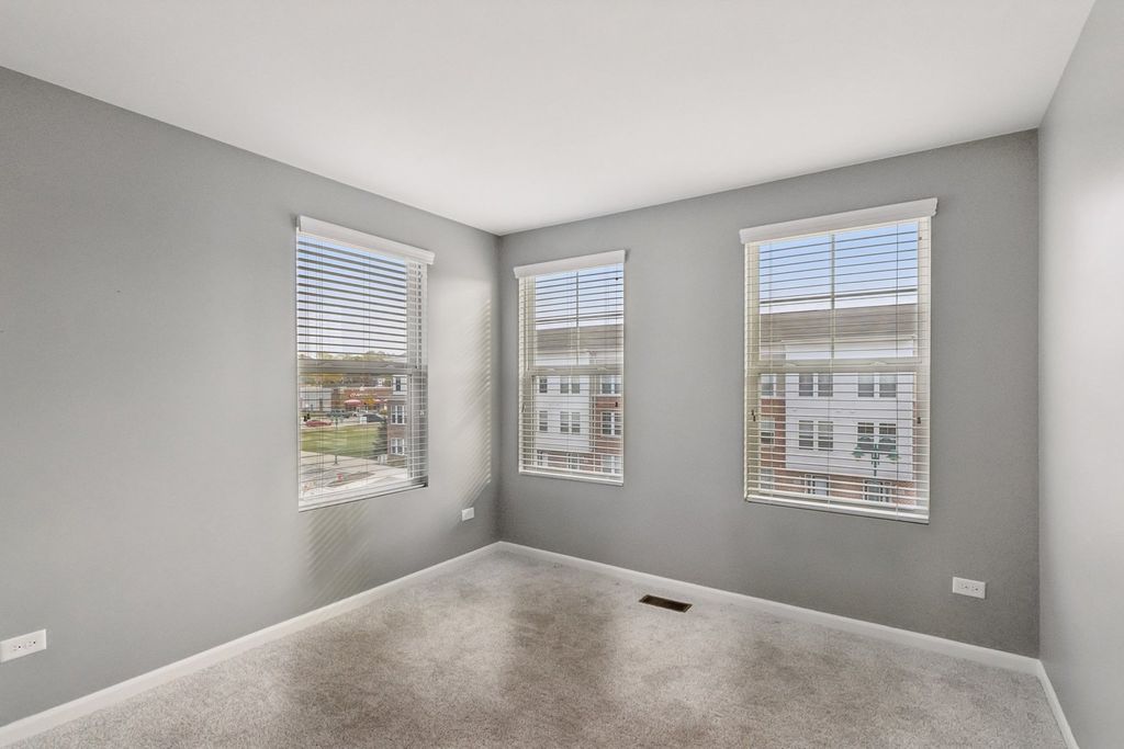 Welcome to this beautifully upgraded 3-bedroom, 3-story corner unit townhome that perfectly blends style, comfort, and convenience. A charming covered front porch invites you inside to a bright, airy foyer and a versatile living room/office space, complete with a modern barn door. Engineered hardwood floors flow throughout the main living areas, creating a warm and contemporary atmosphere. The inviting family room showcases large windows that fill the space with natural light, recessed lighting, a cozy fireplace, and access to a private balcony.The spacious kitchen features an oversized island, custom backsplash, and a separate dining area full of charm-ideal for gatherings and everyday living. Upstairs, the primary suite impresses with a shiplap accent wall, tray ceiling, plush neutral carpeting, and a spa-like bath with dual vanities, an oversized glass shower, and a massive walk-in closet. Two additional bedrooms offer generous closet space and share a beautifully appointed full bath. Convenient second-floor laundry adds to the home's functionality. Located in the desirable Uptown at Seven Bridges community with highly acclaimed Downers North High School. Easy access to shopping, dining, golf, and entertainment. Schedule your tour today!
