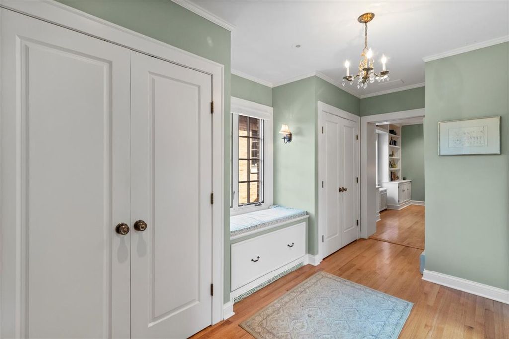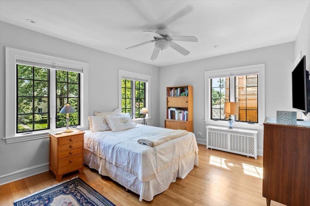 Welcome to this remarkable 4 bed, 3.2 bath Tudor featuring timeless elegance with thoughtful modern updates. Perfectly situated across from Lindberg Park and just two blocks from award-winning Mann School, this home delivers the ideal balance of luxury living and family comfort. Step inside to expansive, light-filled rooms with original chandeliers, leaded glass details, and classic moldings that highlight the home's rich character. The formal living and dining rooms are perfect for entertaining, while the Juliette windows in the dining area invite a refreshing summer breeze. The updated chef's kitchen combines function and style with quartz countertops, 42" maple cabinets with custom organizers, a Wolf range, Sub-Zero refrigerator, and Miele dishwasher. Enjoy relaxing and unwinding in the expanded family room that connects to the bluestone porch with sunshades-an inviting spot for morning coffee or evening gatherings. Upstairs, the luxurious primary wing offers a spacious bedroom, sitting area, private office, spa-like bath with soaking tub and walk-in shower, and brand-new California Closets. Additional bedrooms are generously sized, featuring hardwood floors. For convenience, laundry is located on the second floor. The finished lower level adds a versatile recreation room and ample storage, while the third floor is ready for your personal touch. Outside, the beautifully landscaped yard provides a private retreat with mature plantings, lush greenery, and ample space for play or relaxation. Recent updates ensure peace of mind, including most windows replaced in 2007, a roof just 4 years old, two new water heaters, dual-zone Nest thermostats, and Lutron lighting. Blending timeless Tudor craftsmanship with today's finest amenities, this home offers the space, style, and location families dream of-all in one of Oak Park's most desirable neighborhoods.
