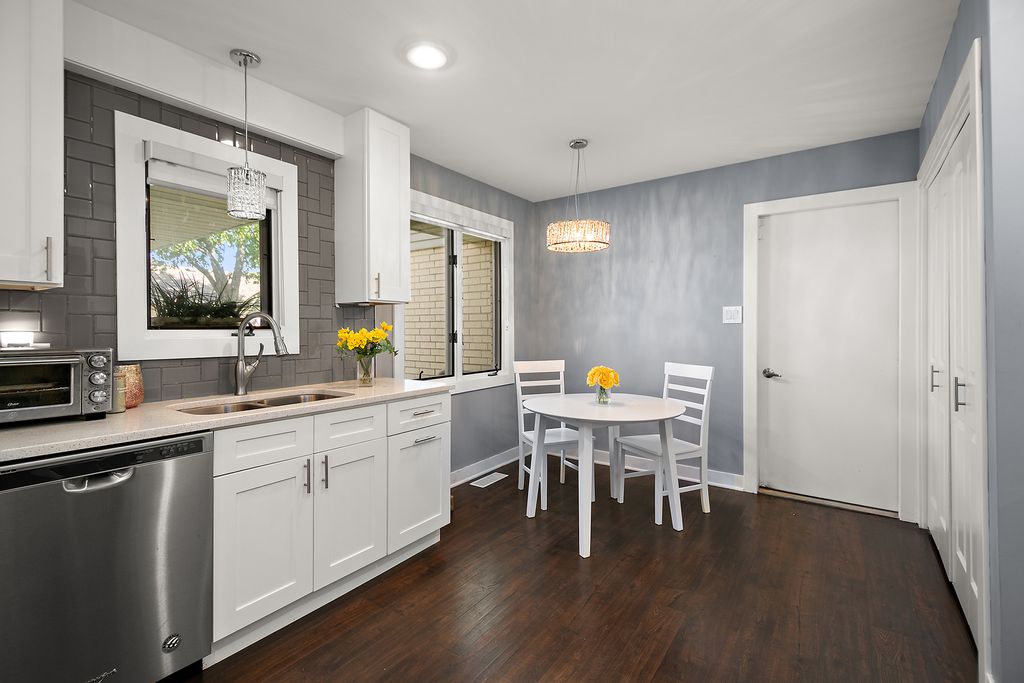 Welcome home to this stunning, fully remodeled end-unit townhome in the heart of Orland Park! Located on a private cul-de-sac. You'll be impressed by every single detail the moment you walk in. This beautiful home offers 3 bedrooms and 2 full baths, including a main-level bedroom and full bath-perfect for guests or anyone looking for first-floor living. Enjoy an open-concept layout with a bright and airy eat-in kitchen, breakfast bar, and plenty of space to entertain. The kitchen features quartz countertops, a glass tile backsplash, and all stainless steel appliances that make cooking a joy. The living room offers a cozy fireplace and floor-to-ceiling windows that fill the space with natural light and overlook the spacious backyard. Upstairs, you'll love the shiplap accents, stylish lighting, and a versatile landing area that's perfect for a reading nook or home office. The primary bedroom features a shiplap accent wall, rustic sliding barn doors, and a luxurious en-suite bathroom with a custom glass-tiled shower. With a two-car garage, large yard, and a modern, move-in-ready design, this home truly has it all.