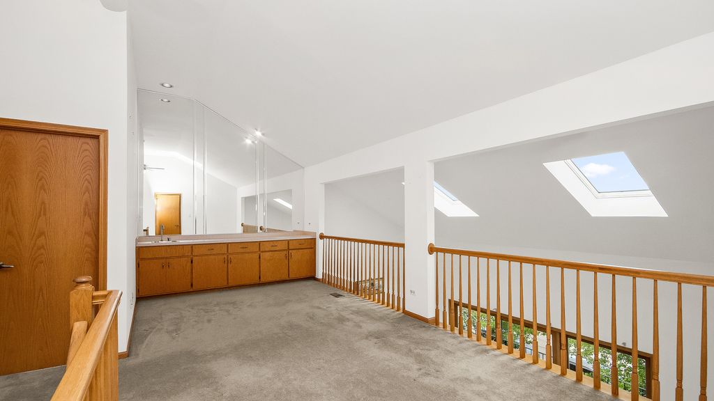 Welcome Home! Experience elevated suburban living in this spacious and beautifully maintained 2-bedroom, 2-bathroom residence with a heated sun room and an airy loft-perfect as a home office, reading nook, or creative studio. Nestled in a quiet, wooded corner of Orland Park, this stunning top-floor unit combines comfort, elegance, and convenience in one inviting package. Soaring cathedral ceilings and expansive windows fill the home with natural light, enhancing the open-concept design and creating an atmosphere of warmth and sophistication. The loft overlooks the grand living area, adding architectural charm and a true sense of space. Enjoy the fresh, clean feel of this move-in-ready home, complete with a large private balcony ideal for morning coffee or evening relaxation. Storage abounds with generous closets, a two-car tandem garage, and an additional storage unit. Located just minutes from everything Orland Park and Tinley Park have to offer-shopping, dining, parks, and entertainment-plus easy access to downtown Chicago via the nearby Rock Island Metra line (only 10 minutes away). Off-street visitor parking adds extra convenience for guests. Discover a perfect blend of tranquility, modern design, and connectivity-your next chapter begins here!