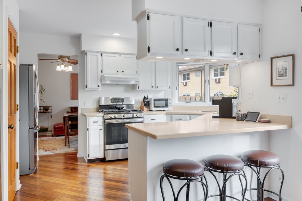Live your best life in Countryside Meadows! Stylish 3-bedroom, 2.5-bath middle-unit townhome that's fully move-in ready. Freshly painted with rich Brazilian teak floors and an open layout perfect for entertaining or working from home. The updated kitchen features Corian countertops, a newer stove with built-in air fryer, refrigerator (2 yrs new), and disposal. Enjoy a fully fenced yard with maintenance-free decking, large patio, and professional landscaping. Upstairs includes a spacious primary suite with granite finishes and updated baths. Attached 2-car garage, unfinished basement for your ideas, water heater (2022), and HVAC serviced (2024). Across from a park and close to shopping, dining, and expressways-modern living made easy!