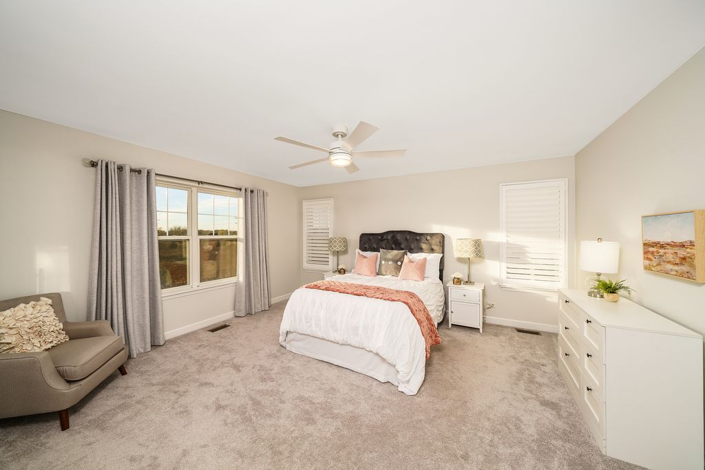 Absolutely STUNNING and upgraded 2 story with a finished basement on the most incredible lot. Enjoy the most incredible sunsets overlooking the forest preserve. This end unit Baldwin model features a fabulous floor plan on each of the 3 levels. 9' ceilings on the first floor, hardwood flooring on the entire first floor, new white kitchen has been redesigned and features cabinets to the ceiling, quartz countertops with a waterfall island countertop, stainless steel appliances, and overlooks the family room with a stone fireplace and beautiful mantle. The formal dining room is 2 stories with extensive windows. The 2nd floor features 3 bedrooms, 2 full bathrooms and a spacious laundry room. The gorgeous primary suite includes a walk-in closet with organizers and a new bathroom with tall dual vanities and custom shower. The finished basement features a 2nd family room, bedroom with amazing closet and a gorgeous full bathrooms with plenty of storage. The oversized deck and the heated 2 car garage make this an incredible place to call home. Newer roof 2022, HVAC and water heater new in 2020.