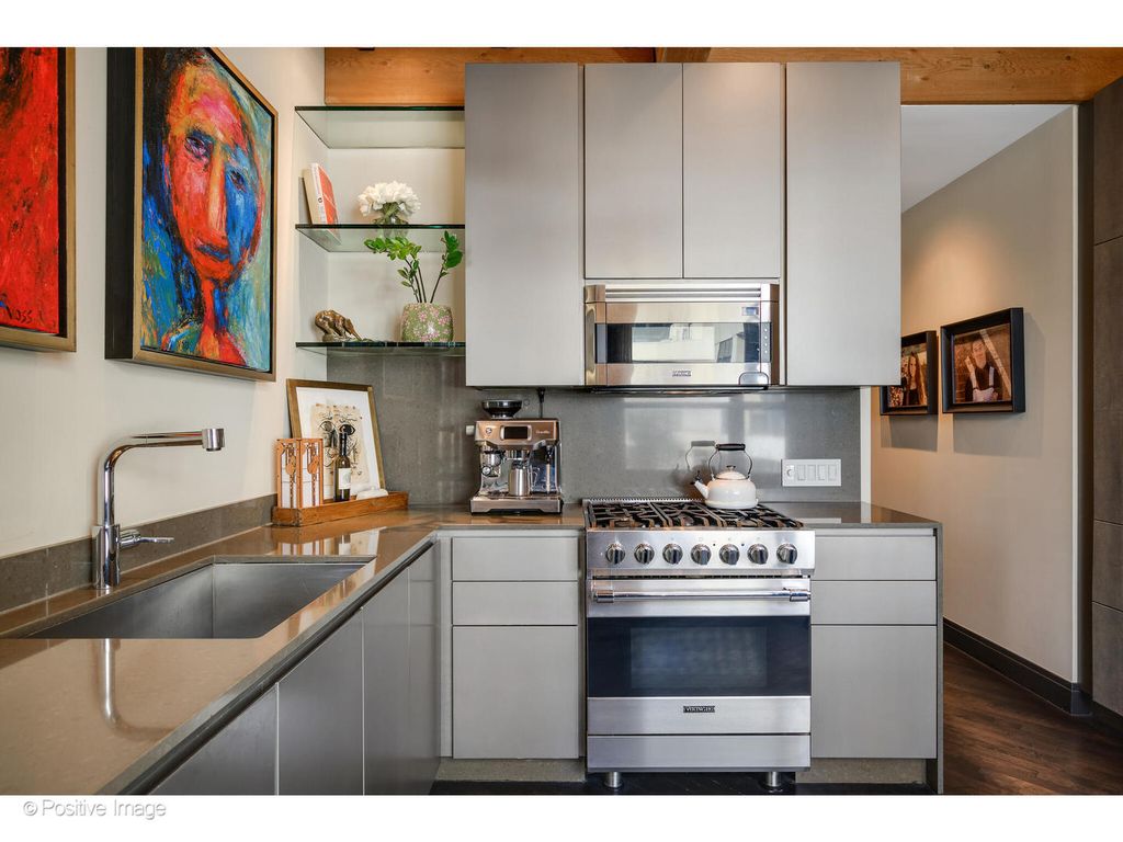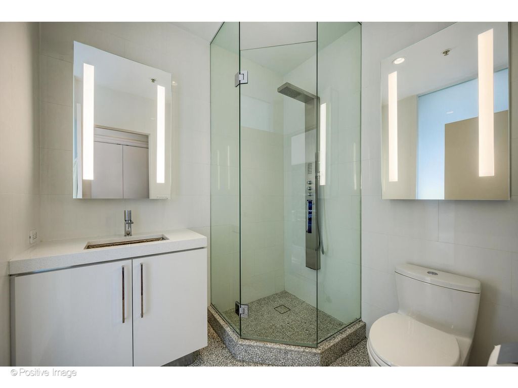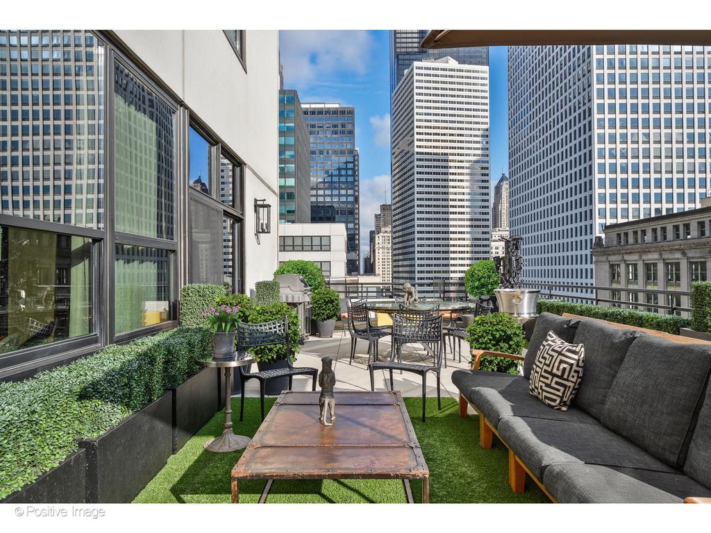 Incredible, one-of-a-kind downtown penthouse with 2200 SQFT of interior living space and a 1000 SQFT terrace at Metropolitan Place! This home was previously lived in and designed by internationally acclaimed interior designer, John Wiltgen. After waiting several years for such a residence to come available, Wiltgen took meticulous care in his redesign of the home and selection of the materials, the result of which is a sumptuous delight for the senses and nothing short of perfection. Upon entry, Venetian plaster columns, architectural sconces, and silver leaf mirrors adorn the gallery while diagonal hardwood flooring leads you through a hall of mirrors into the living and dining room. New timber ceilings throughout the living space and primary suite, adding another layer of rich texture to the home. The large living room overlooks the lush, private terrace. One corner of the living room features a Calypso quartzite gas fireplace, providing an intimate setting. The dining area is clearly delineated by a show-stopping chandelier hovering over the dining table. The interior space within the public rooms flows seamlessly into the exterior, easily accommodating 100 or more guests. The 1,000 SQFT terrace is larger than most Chicago backyards. This truly special space features show-stopping views of the Sears Tower and downtown skyline and has new pavers, irrigation, a gas line, custom exterior lighting, and abundant space to entertain, dine, or simply relax. The kitchen is a lesson in layered minimalism as it balances a sleek confection of lizard-embossed, custom dyed leather cabinetry with the sleek metallic finish of the remaining kitchen cabinets. Other highlights include Cambria quartz counters, backsplash, and waterfall detail along with Sub-Zero, Viking, and Bosch appliances. A second Sub-Zero refrigerator is discreetly tucked away in the hallway. Backlit floating mirrors reflect the architecture of Metropolitan Place in a stunning powder room featuring a Macassar ebony vanity and a custom Swarovski crystal chandelier. Truly a sanctuary, the primary suite features a spacious bedroom, custom walk-in closet, and walls padded in sound absorbing raw silk and lined draperies, which creates a peaceful retreat from the outside world. Sliding glass doors provide immediate access to the terrace. The ensuite bath has heated floors, oversized shower, separate tub, a tanning booth, and cerused white oak paneling, vanity, and linen closet. The flexible guest bedroom suite includes a custom lacquered built-in storage wall with Murphy bed. This space can easily double as a dressing room or yoga studio. The ensuite bath has marble tiled walls and an oversized shower. A laundry room with LG washer and LE dryer completes this space. Two parking spaces in the attached garage and a large storage unit are included in the price. Metropolitan Place is a quiet, well-maintained building with attentive 24-hour door staff and responsive, professional onsite management. Building amenities include a fitness room and a common roof deck. This home is located within Skinner West Elementary school district and one mile from both Jones College Prep and Whitney Young and just steps away from everything the Loop and West Loop have to offer including a 10 minute walk to the Lyric Opera House, 10 min cab ride to a hockey or football game, and within close proximity to restaurants, theaters, nightlife, public transportation, and the expressway. Welcome home!