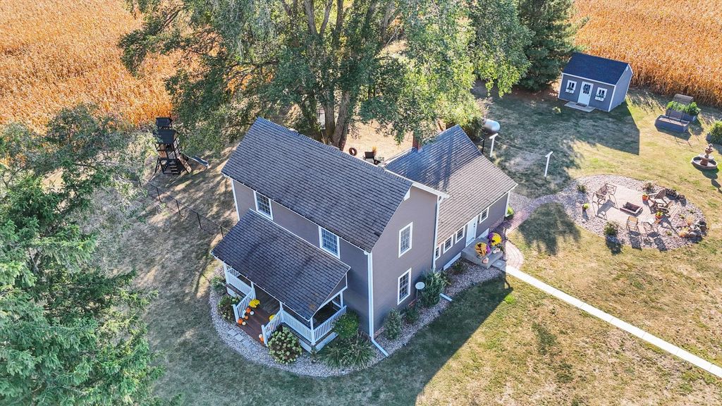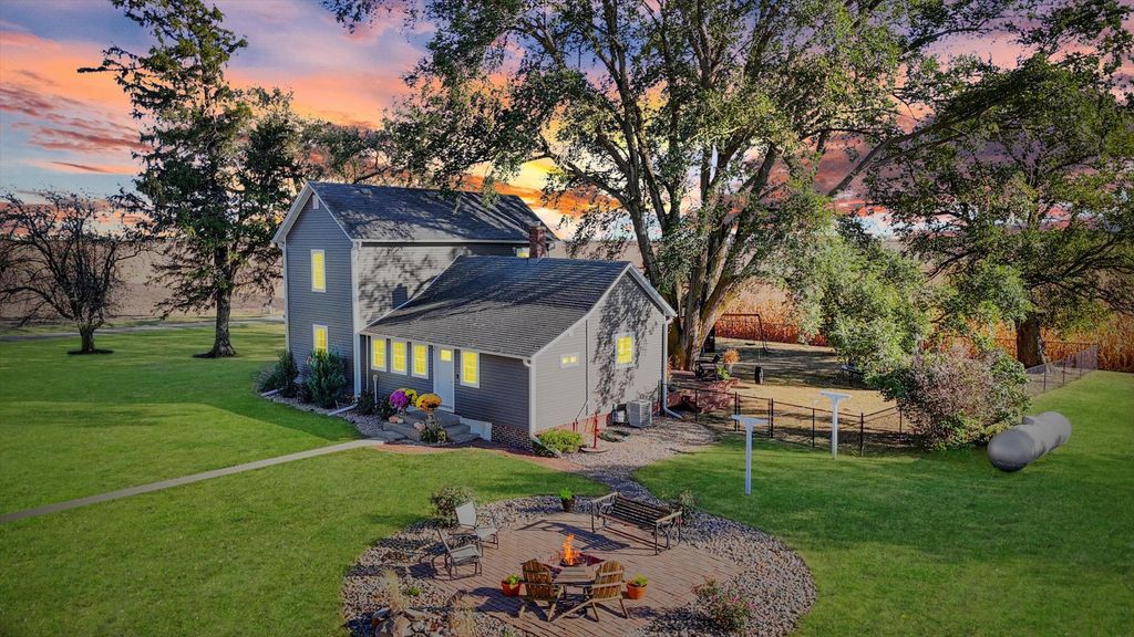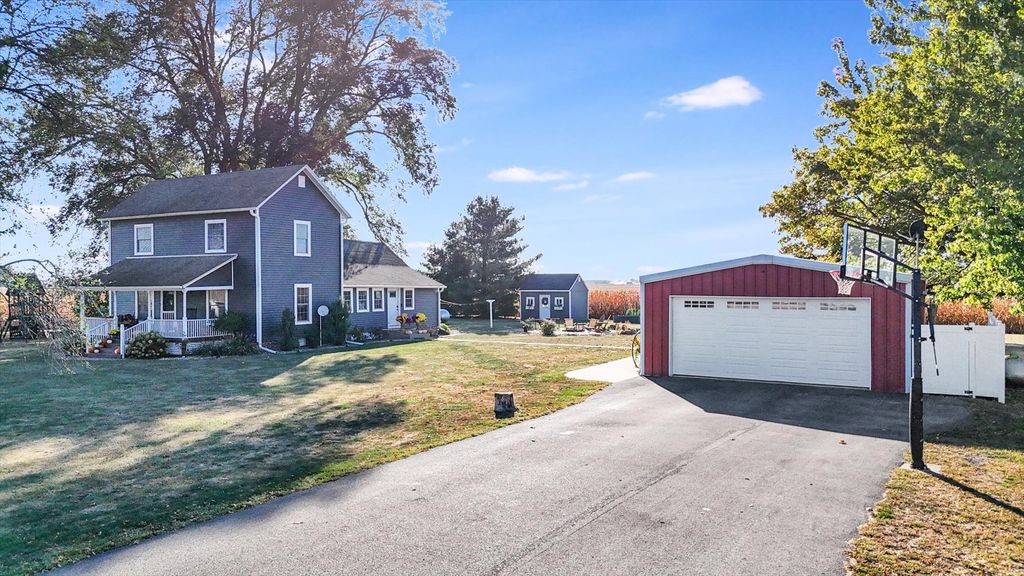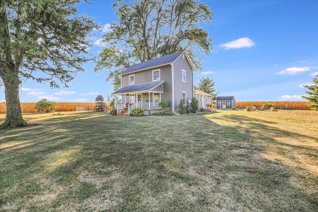 Why settle for a "fake farm-style" house when you can have the real deal? Built in 1903...this adorable 1.5 story farmhouse on 1.6 acres has been loved, enjoyed and extremely well maintained by the same family for the past 25 years...Pride of ownership is hard to miss! Owners have invested over 75K in updates & improvements in recent years! Light, bright, happy home with lots of windows and a very functional floor plan. Offering over 1700 finished living space, plus a (24x30)outbuilding, a (12x16)garden shed and a cutie pie matching mini playhouse. Newer hardwood flooring, carpet, appliances, electric, plumbing, cabinets and carpet, yet keeping the farmhouse style. 3 bedrooms 1 bath (there is space to add another!) Upgraded electric, replacement windows, new outbuilding/shed, siding and more. (see list below) Enjoy small town, country living at it's best! Have another cup of coffee and watch the sunrise from the (25x8) covered front porch...Relax on the (30x15) back deck to enjoy the amazing sunsets... Host a wedding and get stunning pictures... Entertain friends with a band set up on the large (25x30) concrete patio. (no neighbors to complain about the noise!) Gather with the family sitting around the campfire on the beautiful brick patio... Charming solid wood ceiling beams and gorgeous hardwood flooring. Light, bright, happy home with lots of windows and a very efficient, good use of space. Picture perfect and peaceful setting with completely surrounded with wide open views in all directions! (see drone pics!) It's like going back in time...even has an old-fashioned clothes line and a tire tree swing! Plenty of room to roam with a big fenced in area out back, a large concrete patio behind the outbuilding, lots of mature trees and still plenty of open grassy/garden space. Conveniently located only a mile off of highway 130. Enjoy this beautiful rural location, while being only a few minutes from Villa Grove for stores and restaurants. And a quick 20 minute drive to Savoy or Urbana. Villa Grove is a great community, has low taxes and many ongoing and exciting projects planned. New developments include opening of the new community center, a new nature trail and cross-country course by Richman Park. Wonderful home, serene setting that is sure to sell quickly. You will NOT be disappointed with this one...Call your favorite Realtor to see it today! RECENT IMPROVEMENTS: (2017) NEW Furnace, water heater, outbuilding, windows, front porch, concrete patio, sidewalk & underground power & 200 electric service. (2019) NEW kitchen cabinets & carpet. (2020) NEW a/c unit, shed, garage, fence & renovated rooms.(2021) NEW asphalt drive & landscaping. (2022) NEW 2 room remodels. (2023) NEW garden, mailbox & well pump. (2024) NEW fence, deck & gutters.