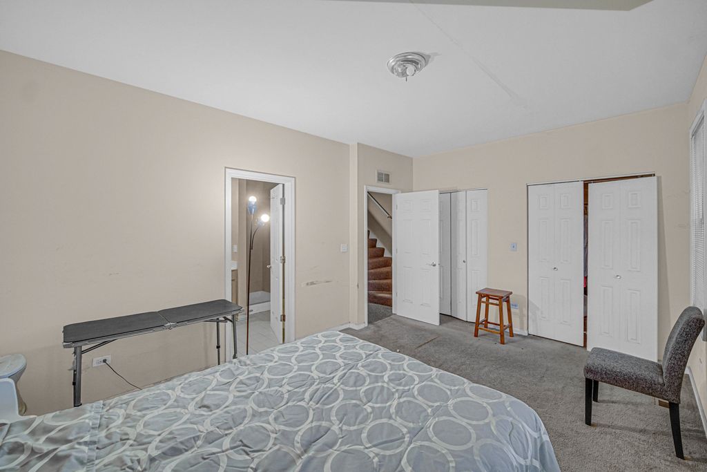 This stunning 3-story row home offers 3 spacious bedrooms, 2.5 baths, and an attached 2-car garage. The main level features a versatile bonus room, washer/dryer combo, and convenient access to the garage. The second level boasts an open-concept living area with hardwood floors, 9-foot ceilings, an electric fireplace, and abundant natural light. Enjoy cooking and entertaining in the eat-in kitchen featuring 42" oak cabinets, granite countertops, a large island, and an adjacent dining area with sliding patio doors leading to a private balcony. A half bath completes this level. Upstairs, the third level includes three generously sized bedrooms with carpeting. The primary suite offers a private ensuite bathroom with double sinks, a soaking tub, and a separate shower. Take in the breathtaking city views from the rooftop deck! Conveniently located near public transportation, just two blocks from Lake Shore Drive, and close to Hyde Park's vibrant shopping, dining, and entertainment.