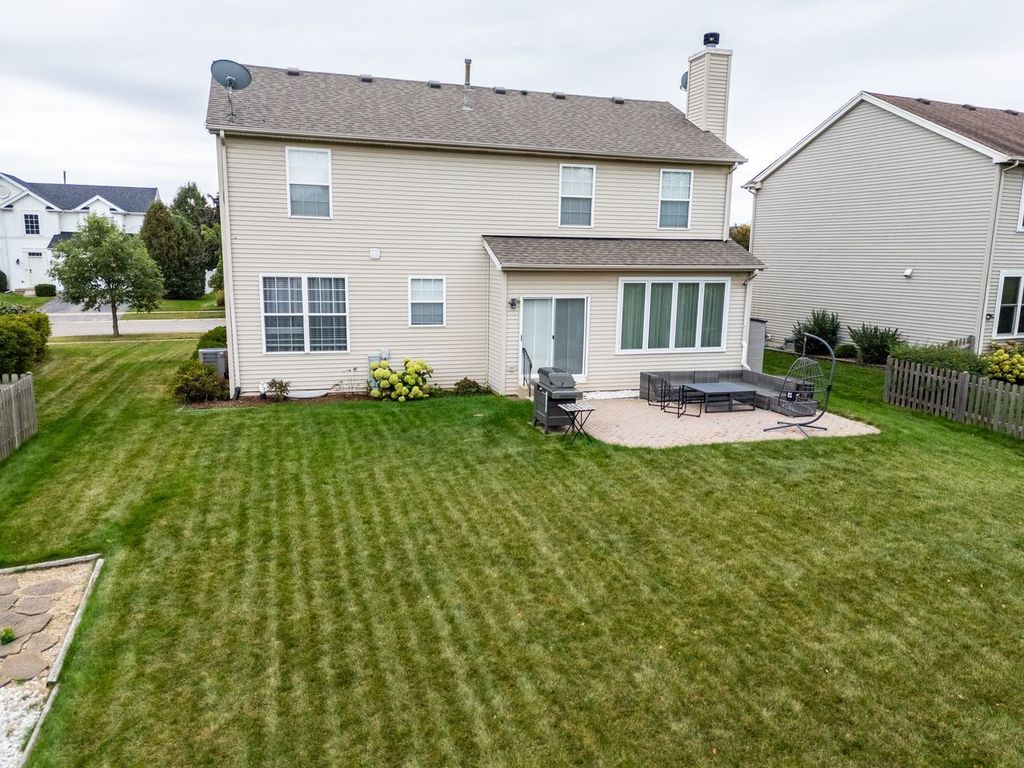*** Multiple offer situation , please submit H&B by October 10 4pm***Welcome to this beautifully updated 4-bedroom and 2,5 bath home located the highly south-after Meadowbrook subdivision, with the top-rated District 158! This home offers a perfect blend of modern amenities and timeless charm, featuring gorgeous millwork throughout! Tons of natural light combinate with 2-story foyer and 9-foot ceilings bring an open and spacious fell to the home! Sheff's kitchen with quartz countertops, breakfast island, stainless still appliances is a great for two who's loves to cook and entertain! The cozy family room is highlighted by beautiful fireplace, ideal for gathering with loved ones! The main level bests rich hardwood flooring and continuing on the second floor, plus showpiece staircase designed with modern craftsmanship. All 4 second floor bedrooms having comfortable sizes! Large master sweet has a walking closet, double vanity, separate soaker tub and shower! One of the other rooms dedicated home office, which is provide perfect space for working from the home! Full finished basement has a game and recreational rooms! Newer 30 years architectural-shingle roof 2020, water heater 2024, water softener 2024, sump pumps 2024. Extra clean and freshly painted! Last, but not the least: the home is located on quiet street and has spacious and beautifully maintain fenced backyard! Prime location, with close proximity to Costco, groceries, parks, playgrounds, theaters, I-90, etc. Welcome to Your Future Home!