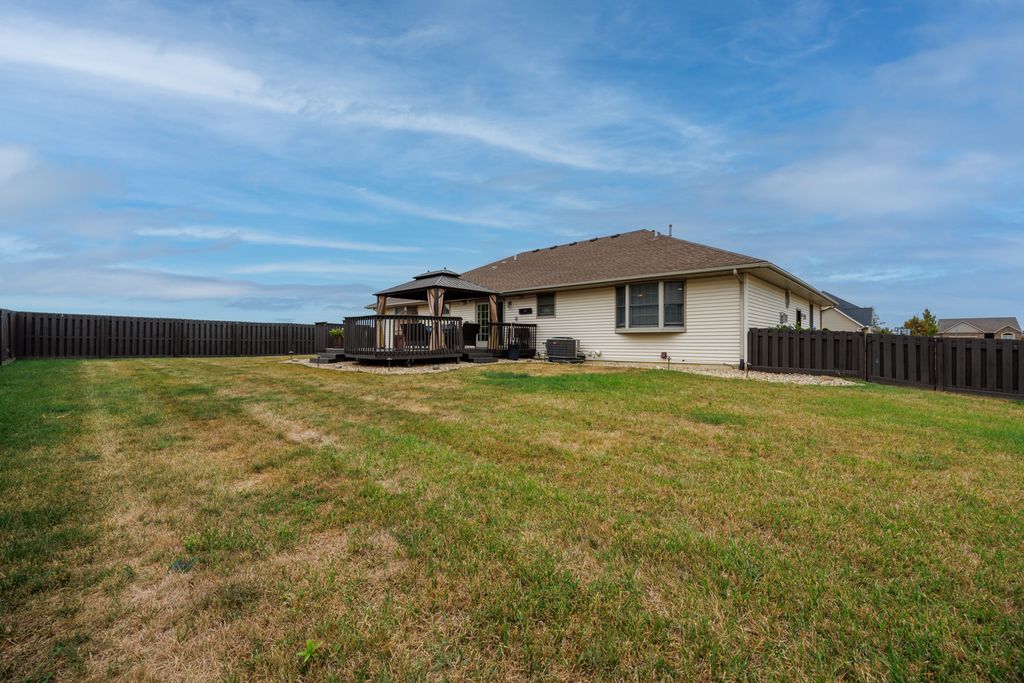 Welcome home to this beautiful ranch home on a corner lot. This home features four bedrooms, three and a half bathrooms with an open floor plan. The first floor features hardwood floors in foyer, hall and kitchen. Custom blinds on all windows on first floor and lower level. Lower level features a wet bar with stone columns, concrete top, theater area with surround sound. Outdoor features a nice fenced yard with 2 gates. Great landscaping all around the home to give it wonderful curb appeal! Updates include new roof June 2025, new fireplace surround and painted garage door. Must see property!