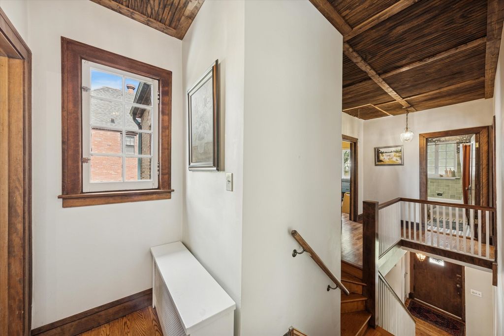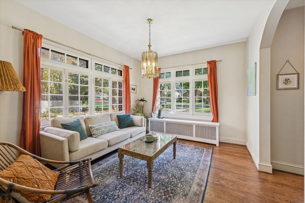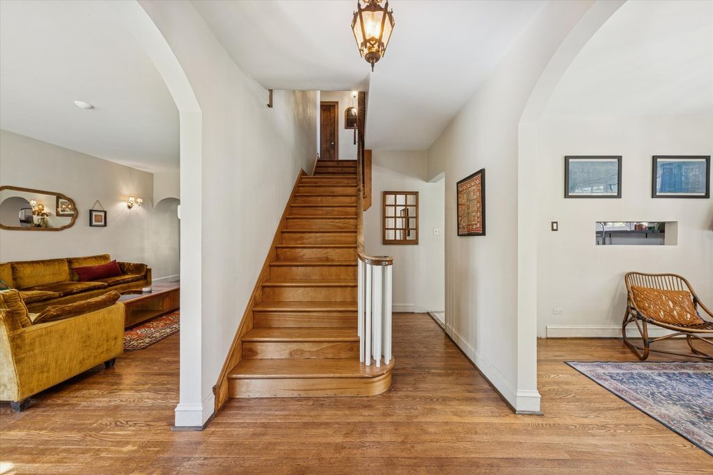 Experience the timeless beauty of this architecturally significant Beverly home, originally designed by Edward George McClellan with a thoughtful addition by Hermann von Holst, a noted colleague of Frank Lloyd Wright. Every detail reflects a perfect balance of craftsmanship, character, and comfort. Step through the inviting arched entryway and be welcomed by classic hardwood floors, beautiful wood detailing, and sunlight streaming through the home's elegant windows. The living and dining areas feature arched openings and a wood-burning fireplace that serves as a warm centerpiece for gatherings. Off the kitchen, a cozy sitting room provides a space to relax, read, or enjoy a morning coffee. Upstairs the primary bedroom features beautifully crafted built-in shelving wall and an all-season room offering a serene retreat. The upper level is completed by three additional generously sized bedrooms and two full bathrooms, one beautifully updated with modern finishes, while the other retains its vintage charm. The spacious and landscaped backyard features a newly installed deck off the dining room, perfect for entertaining. Nestled in Beverly, one of Chicago's most architecturally rich neighborhoods, this home is just moments from parks, restaurants, local shops, and the Metra.