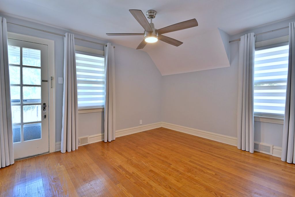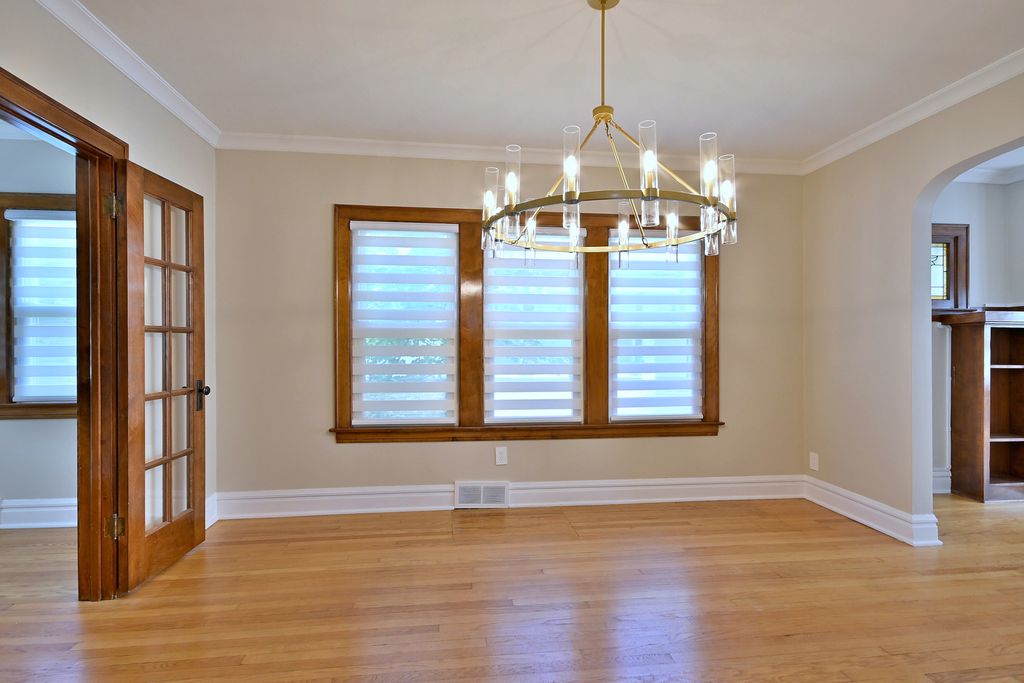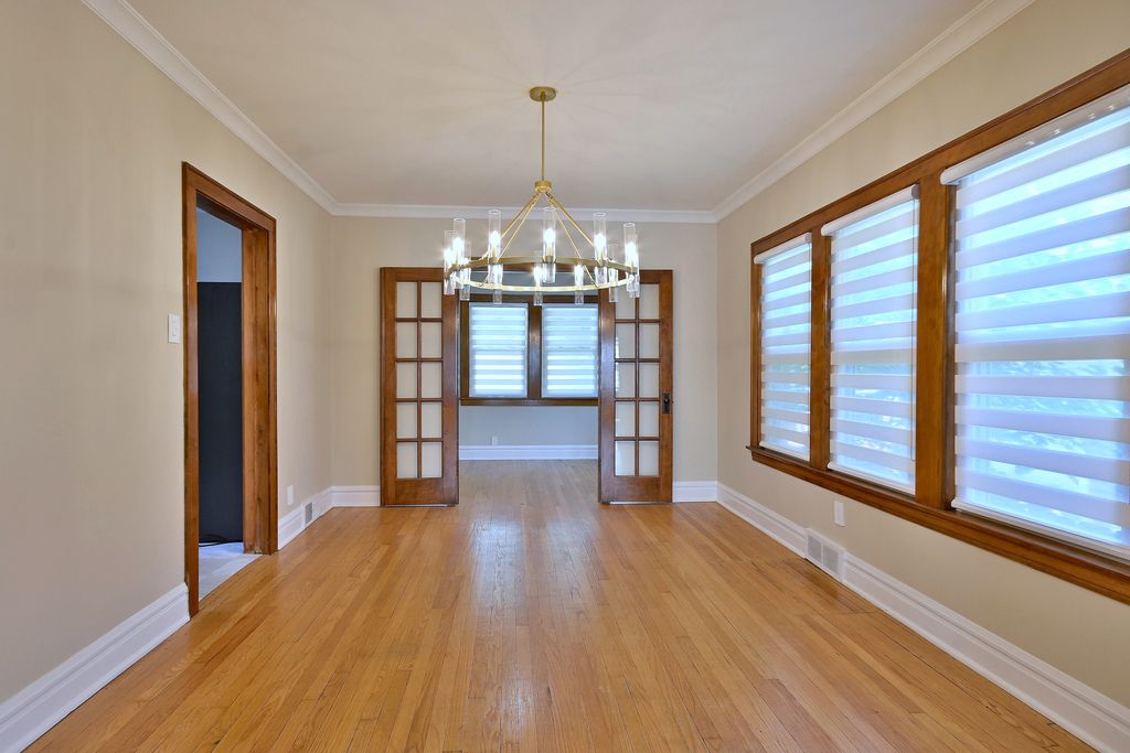 Welcome to this charming brick English Tudor-style home that beautifully blends timeless character with thoughtful modern updates. Featuring 3 bedrooms plus a den and 2 full bathrooms, this home offers a warm and inviting layout with hardwood floors throughout. The cozy living room is anchored by a fireplace with custom built-ins, perfect for relaxing or entertaining. A bright, updated kitchen offers ample cabinet space and modern finishes, while both bathrooms have been recently renovated to reflect today's style and comfort. The main floor includes one bedroom with elegant French doors and a versatile den-ideal for a home office or guest space. Upstairs, the spacious primary bedroom and second bedroom each feature walk-in closets and share a beautifully updated bathroom. The second bedroom also offers access to a private deck overlooking the backyard. The full finished basement extends the living space with a large family room, a second full bathroom, a dedicated laundry room, and generous storage areas. Outside, the home sits on a spacious lot with a large yard perfect for outdoor enjoyment. A detached two-car garage adds convenience and additional storage. This classic Tudor is full of charm, functionality, and updates-ready to welcome you home.