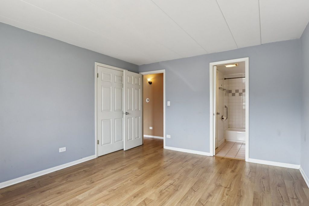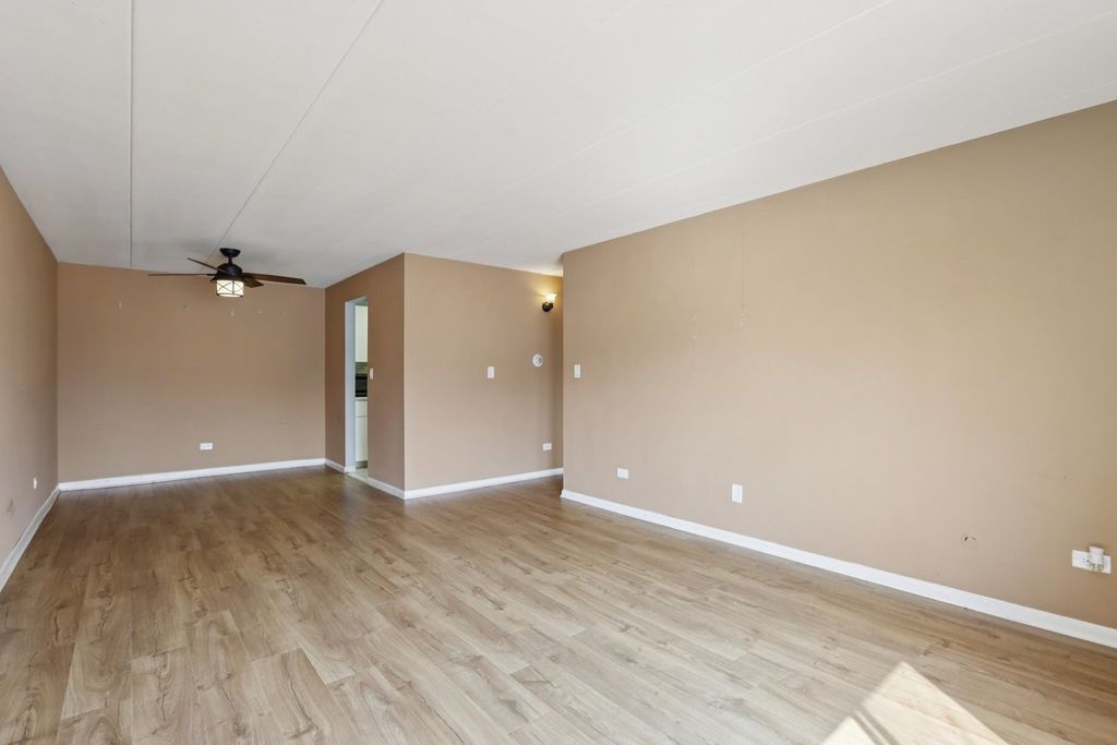 *** All reasonable offers will be considered! Tenant has vacated, unit has been professionally cleaned, freshly painted, & is ready for immediate owner occupancy!***NEAR DOWNTOWN DES PLAINES AMENITIES! EASY ACCESS TO SHOPPING, METRA, & RIVER WALK! This oversized ranch layout is the one you've been waiting for! Enjoy easy living in a beautifully maintained condo building boasting durable brick curb appeal & ample parking! Step inside the shared foyer and note the security doors, convenient doorbell/cell phone system, and well-maintained interior! Enjoy a well-maintained and beautifully updated condo! As you enter, take note of the formal foyer, newer paint, beautiful wood-look flooring, & updated fixtures! This spacious ranch floorplan offers an oversized bedroom with plenty of room for a king bed + bedroom set, ample closet space, and bonus entrance to the bathroom! Bathroom offers a soaking tub/shower combo & dual entrances! No need for blinds, this south-facing unit has no direct neighbors! Host events with ease in the formal dining room & adjacent galley-style kitchen offering neutral white cabinetry! You will love the spacious living room boasting private south-facing views, sliding doors, & open space next door! The building is very well maintained and offers a spacious laundry room, private storage locker, & 1 dedicated parking space! Located near Metra, shopping, restaurants, entertainment, parks, & public transportation! Incredible location, easy HOA living, beautiful brick building, & quick closing is possible! Associate covers the cost of gas, heat, water, garbage, & lawn care/snow removal. Very low electric bill & affordable taxes. Peaceful building with no rentals allowed; owner occupancy only!