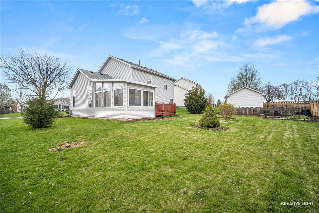 Welcome to 1438 Westbury Circle in desirable Waterford Oaks-an opportunity-packed home in the heart of North Aurora. Built in 1997, this well-maintained 3-bedroom, 2.1-bath home offers 1,715 square feet of above-grade living space, plus a finished partial basement ideal for additional storage or recreation. Set on a generous .21-acre lot (approx. 9,147 sq ft), this move-in-ready property features a spacious backyard with a deck overlooking garden areas-perfect for relaxing or entertaining. The rear sunroom is a standout bonus, with windows on three sides and a sliding glass door that opens directly to the deck, creating a bright and inviting space. Inside, you'll find a functional layout filled with natural light from west- and south-facing windows in the living room and two bedrooms. The living room impresses with soaring 17-foot ceilings, offering an open and airy feel. The interior was freshly painted in 2026, complemented by brand-new light fixtures in the kitchen and hallways. A beautiful staircase with freshly painted risers and stained treads gives the living room a WOW Factor. Whether you're looking to move right in or add your own updates and build equity, this home offers a strong foundation in a fantastic location near parks, shopping, and major roadways. Walkable to Jewel Middle School and Fearn Elementary School, and just about 1 mile from shopping, award-winning restaurants, and a local brewery. Only 1.6 miles to the I-88 expressway on-ramp-making commuting and travel incredibly convenient. A rare opportunity to own a well-kept home with upside in a prime North Aurora location-schedule your showing today.