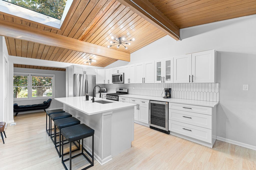 Wonderful Mid-Century Open Concept Ranch in a Great Walk to Everything Location. Features include Dramatic Vaulted Wood Ceilings, Skylights, Clerestory Windows and a Beautifully Renovated Spacious Open Kitchen with a Huge Island, Wine Refrigerator and Quartz Countertops, which Opens to the Large Living/Dining Room Combo. This Lovely Home is Move-in Ready and has a Full Finished Basement with a 4th and possibly 5th Bedroom, and a Full Bath. So Much Updating has been Done in 2022 including Kitchen, Bathrooms, Roof, Plumbing, Electrical, Basement Windows, High Efficiency Furnace and A/C. This Home is Ideally Located a Short Walk to Beautiful Parks and Forest Preserves, the Lake, the Metra train, Amazing Shops, Restaurants and Nightlife, and Miles of Walking and Bike Trails. A Wonderful Place To Call Home!