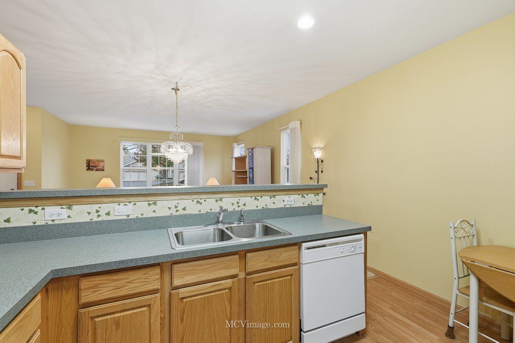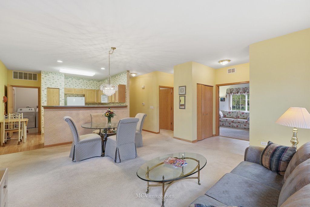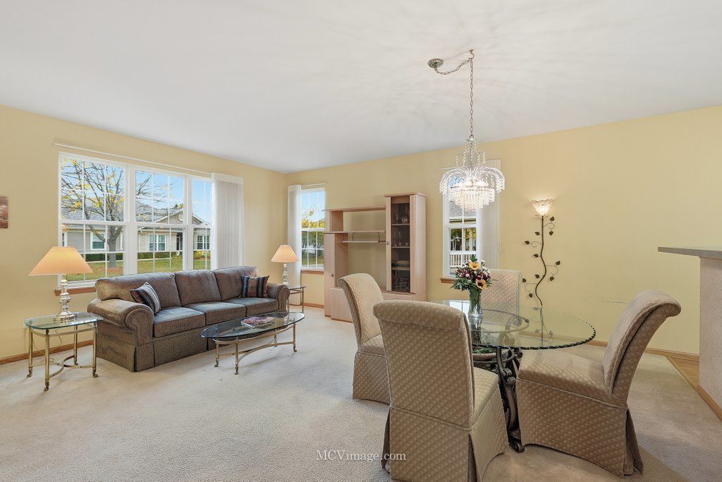 Welcome to this beautiful RANCH townhome situated on a premium, corner lot with picturesque views in Carillon Lakes 55+ Active Adult Community. This charming 2-bedroom, 1 bath Monterey model offers almost 1,300 sq. ft. of living space with 9-foot ceilings throughout, creating an open and inviting atmosphere filled with natural light. The upgraded covered front porch offers a welcoming outdoor space to relax and unwind. The front entry has no steps providing easy accessibility into the home. Inside, the open-concept family and dining areas offer a comfortable flow ideal for daily living and entertaining. The beautiful eat-in kitchen features abundant oak cabinetry, all appliances, and a pantry for ample storage. The expansive primary bedroom suite includes a generous 9x9 walk-in closet and access to a shared bathroom. The large spa-like bathroom boasts a relaxing soaking tub, separate shower, and a stylish double-sink white vanity. Double French glass doors lead to the versatile second bedroom, which also features a walk-in closet and a sliding glass door opening to the side patio-perfect for use as an office, den, or hobby room. A spacious laundry room with washer and dryer adds extra convenience. Situated on a picturesque corner lot, this home overlooks open green space that enhances privacy and tranquility. 2-car, attached deep garage provides extra storage. NEW roof and gutters (2024), furnace and A/C (6/2021), hot water heater (12/2020) and a water softener. Enjoy resort-style living in Carillon Lakes is a 55+ active adult community with indoor/outdoor pools, clubhouse, exercise facilities, golf course, tennis courts, lakes and walking paths. Prime location near shopping, dining, expressway and more.