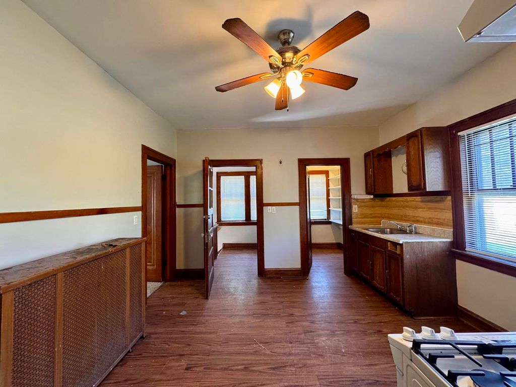 All brick bungalow on a large fenced-in yard featuring 3 bedrooms and 1 full bathroom. The entryway opens to a large light filled living room and dining room which leads to the kitchen with walk-in pantry. This home also includes enclosed front & rear porches. A staircase that leads upstairs to a large unfinished area that has a dormer which can be repurposed into a 4th bedroom and 2nd bathroom. Also included is a full basement for additional storage or finish with another bedroom or family room. Tons of opportunity! Enjoy the large fenced backyard, offering plenty of room for pets, play, or even to add a garage or parking pad. Conveniently located near parks, shopping, and major highways.