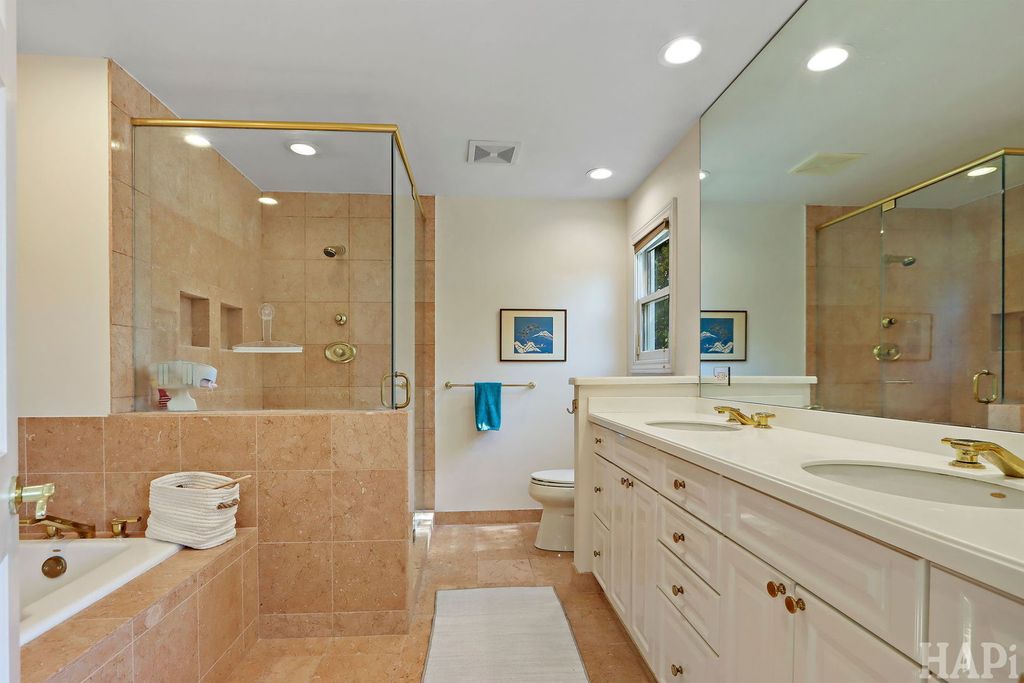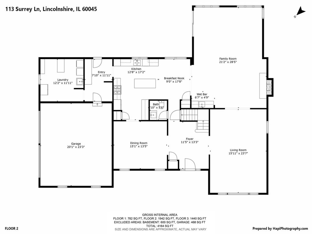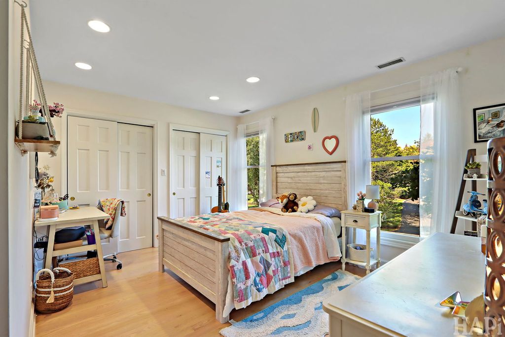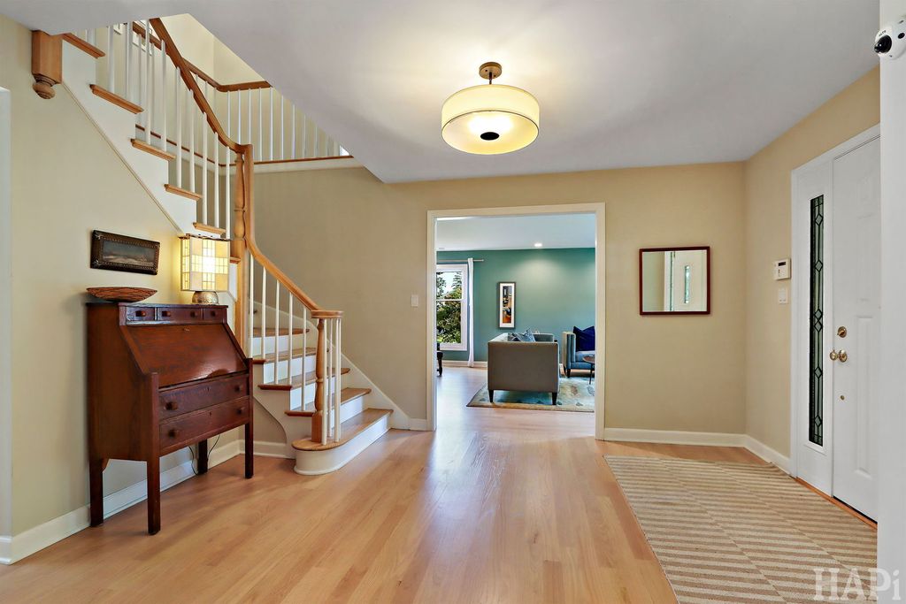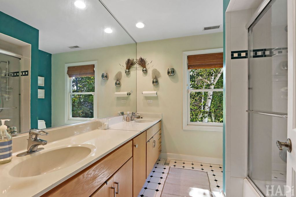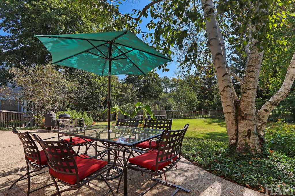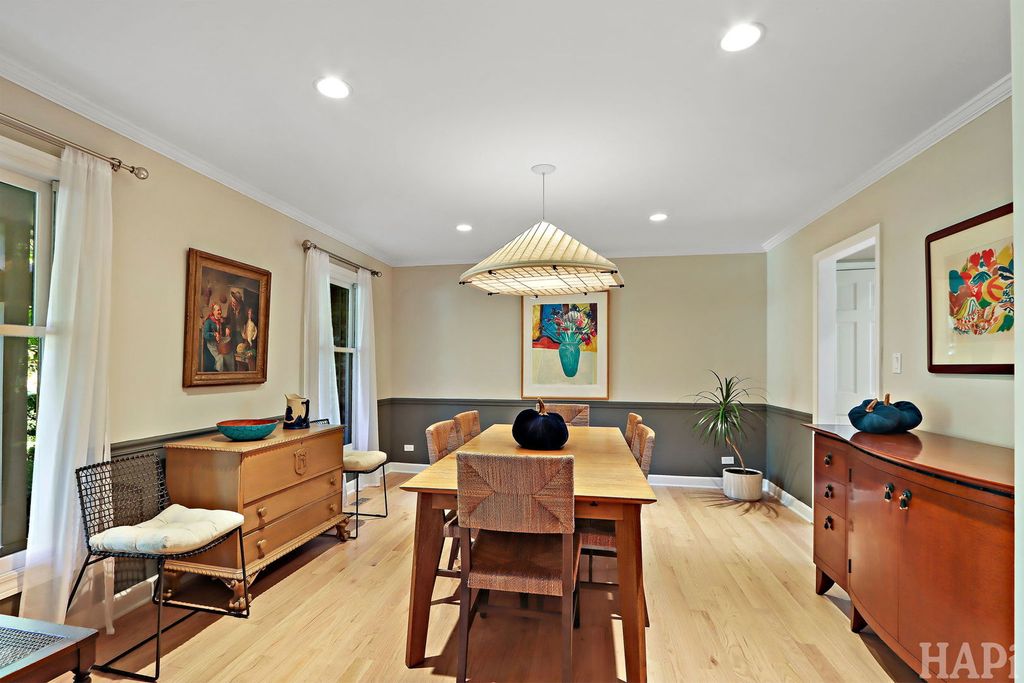 Located in one of Lincolnshire's most desirable neighborhoods and the award-winning D103 and Stevenson school districts, this beautifully updated home sits on over a half-acre of professionally landscaped grounds with mature trees. A new cedar fence encloses part of the backyard, while a poured pebbled patio offers peaceful landscape views and an expansive side yard to the south. The welcoming front porch leads to an interior with new hardwood floors, fresh modern paint, and recessed lighting throughout the home. The open foyer flows to a formal dining room and sun-filled living room with a new picture window. The family room connects seamlessly to the kitchen and living areas, anchored by a floor-to-ceiling brick fireplace with new gas logs. An addition at the back brings even more light and living space, along with a full wet bar featuring a beverage cooler and cherrywood countertop. The kitchen offers stainless steel appliances, granite counters, and a bright dining area overlooking the backyard. Updates include a redesigned powder room (2024) and a new laundry room with dog bath, second refrigerator, and ample storage. The mudroom features floor-to-ceiling storage and access to the epoxy-coated garage. Upstairs, four generous bedrooms share a full bath with double sinks. The primary suite includes a large custom walk-in closet and a spa-like bath with dual vanity, glass shower, and soaking tub. The finished basement adds luxury vinyl flooring, recessed lighting, and abundant storage. Major improvements include a new roof (2025), HVAC systems (2024), sump pumps (2023), gas fireplace (2025), plus a Generac generator for nearly whole-home backup. Close to Old Mill Park, Whytegate Park, North Park, and local bike trails, this home blends comfort, style, and unbeatable location.